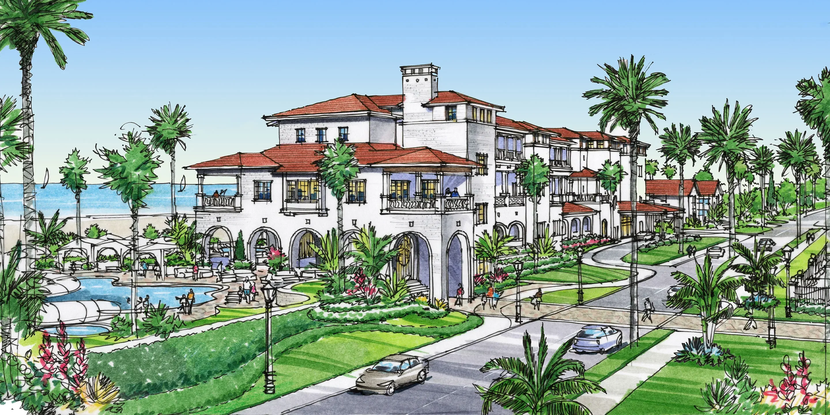 Cooper Carry created a master plan to envision the future resort and enhance its connection to water by opening up views to the ocean. We designed two new buildings. The Surf Club is the resort’s gateway to the ocean. It includes two restaurants, a new adult pool, and new children’s pool, as well as an oceanfront ballroom and two levels of guestroom suites. A two-story Wellness Center will include state-of-the-art fitness equipment as well as spin and yoga rooms and a rooftop pool with views to the ocean. The grounds offer new tennis and pickleball facilities. The white brick buildings feature a coastal Mediterranean character, with open air verandas and lush courtyards that respect the character of the original resort.
