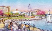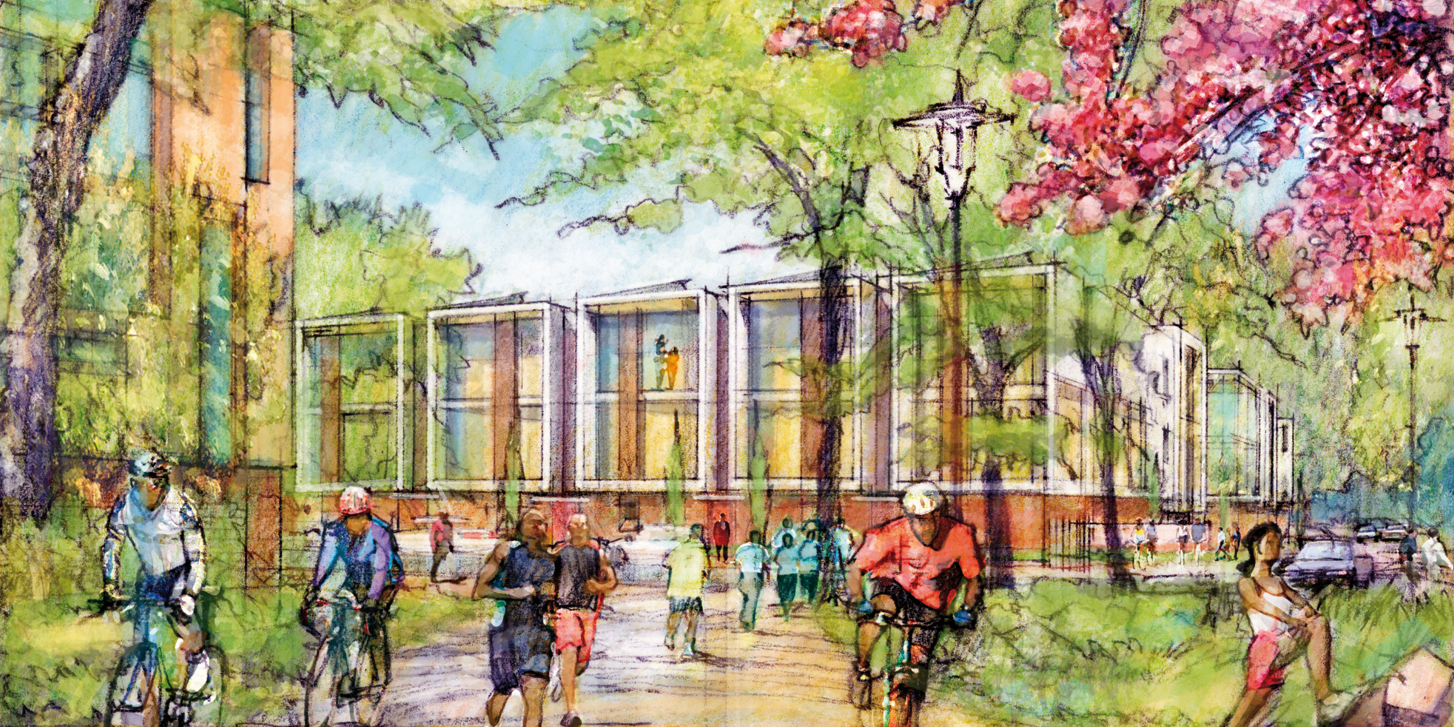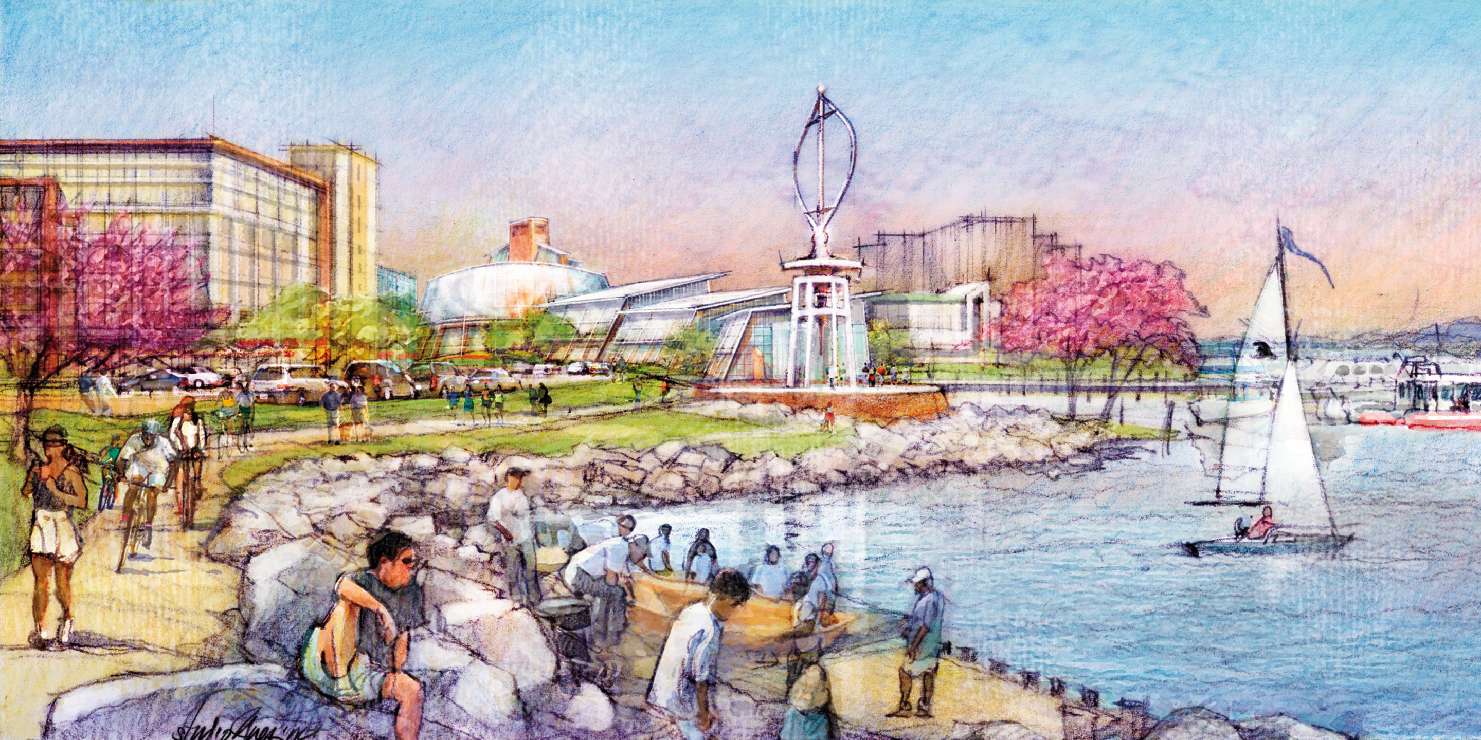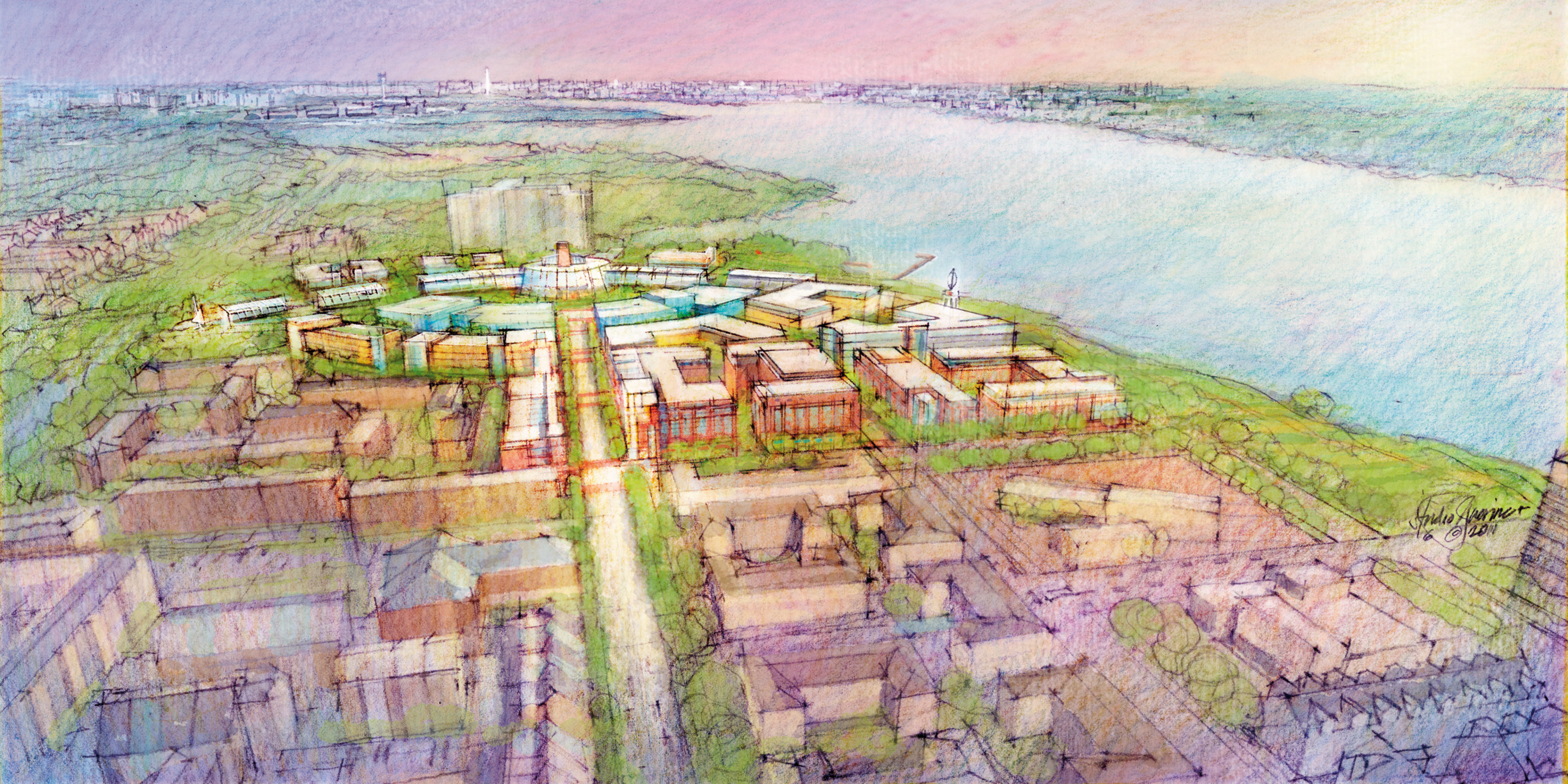 The American Clean Skies Foundation asked Cooper Carry to master plan the envisioned future of the site of an outdated coal-fired power plant site. The concept for Potomac River Green (PRG) reflects an innovative vision for transforming one Alexandria’s last remaining Industrial sites into a thriving and sustainable 21st Century residential and commercial neighborhood. The concept creates expanded river access and open space amenities; contains hundreds of new riverfront housing units and hotel rooms; greatly improves community connectivity to the City’s Old Town area; and at the heart of the site, creates a world-class new energy center for the Washington, DC region, including displays of new energy technology, incubator office space and alternative refueling stations. The concept was to develop not only a state-of-the-art facility, but to exceed the expectations of green land development. Smart co-location of uses cuts down the need for cars. Street and trail connections provide for the use of public transportation or regional bike trail to get to and from the site. Throughout, the project includes innovative energy production and use for residential, office, retail and hotel buildings on the site. State of the art stormwater management is a major component of energy production.