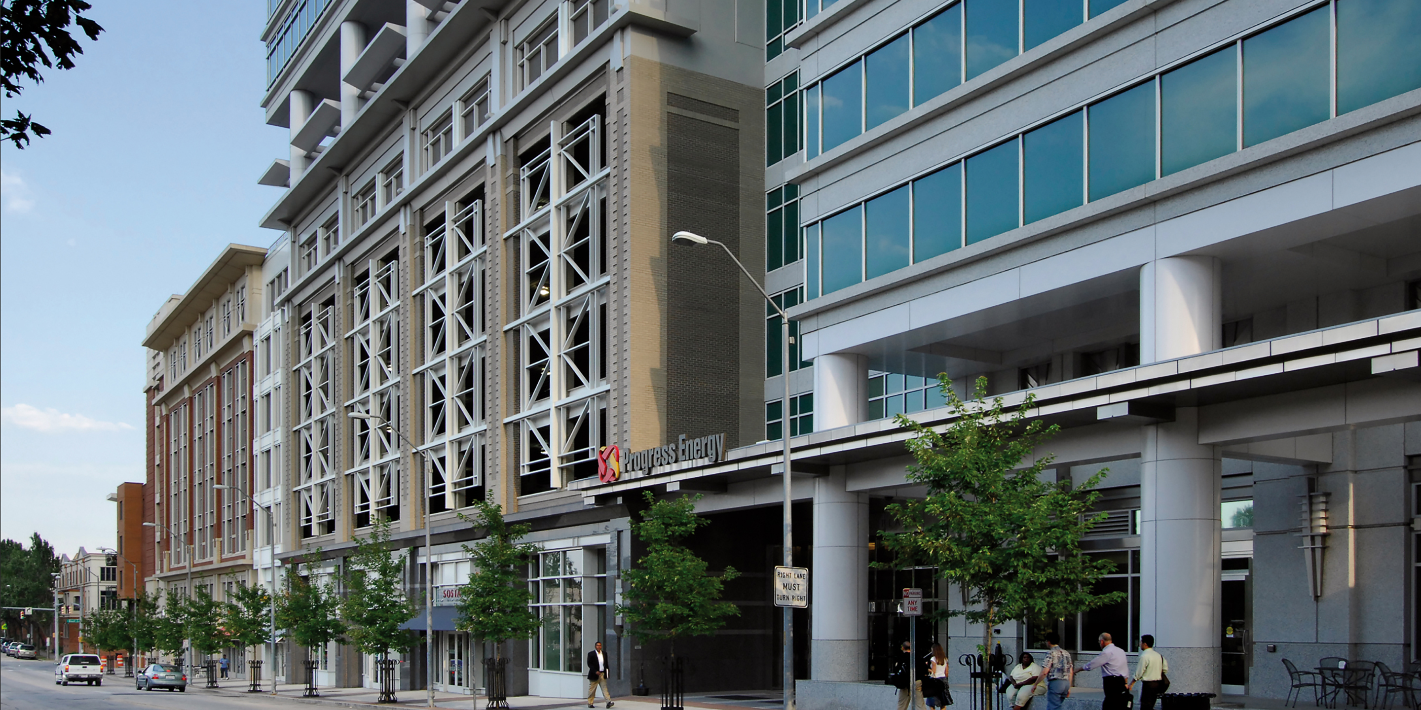 The current development plans encompass a four block masterplan for the densification and redevelopment of the downtown core of Raleigh, North Carolina. The plan calls for densification through the addition of a rich mix of urban housing, office space, street level retail and structured parking. The first phase was the construction of a mixed-use development for Progress Energy on the city block due east of their current headquarters building. The project incorporates 400,000 square feet of office space including an energy trading operation with open floor space for approximately 500 traders, 80 residential units fronting residential neighborhoods to the east of the project, 20,000 square feet of street level retail and a structured parking facility with a 1,000 car capacity. Red Hat purchased the facility in 2011.