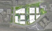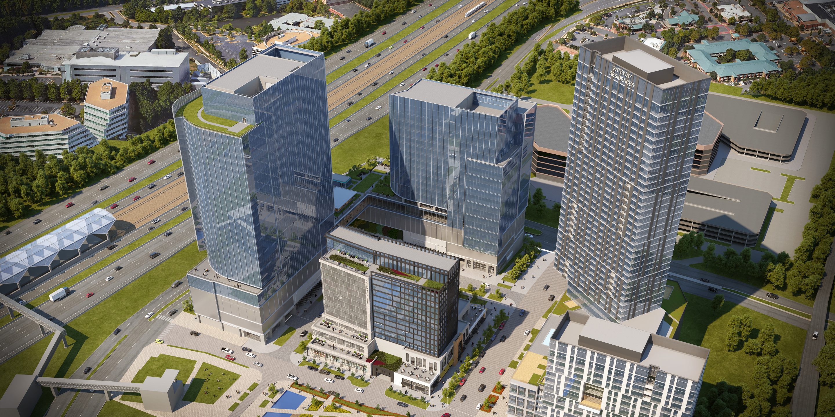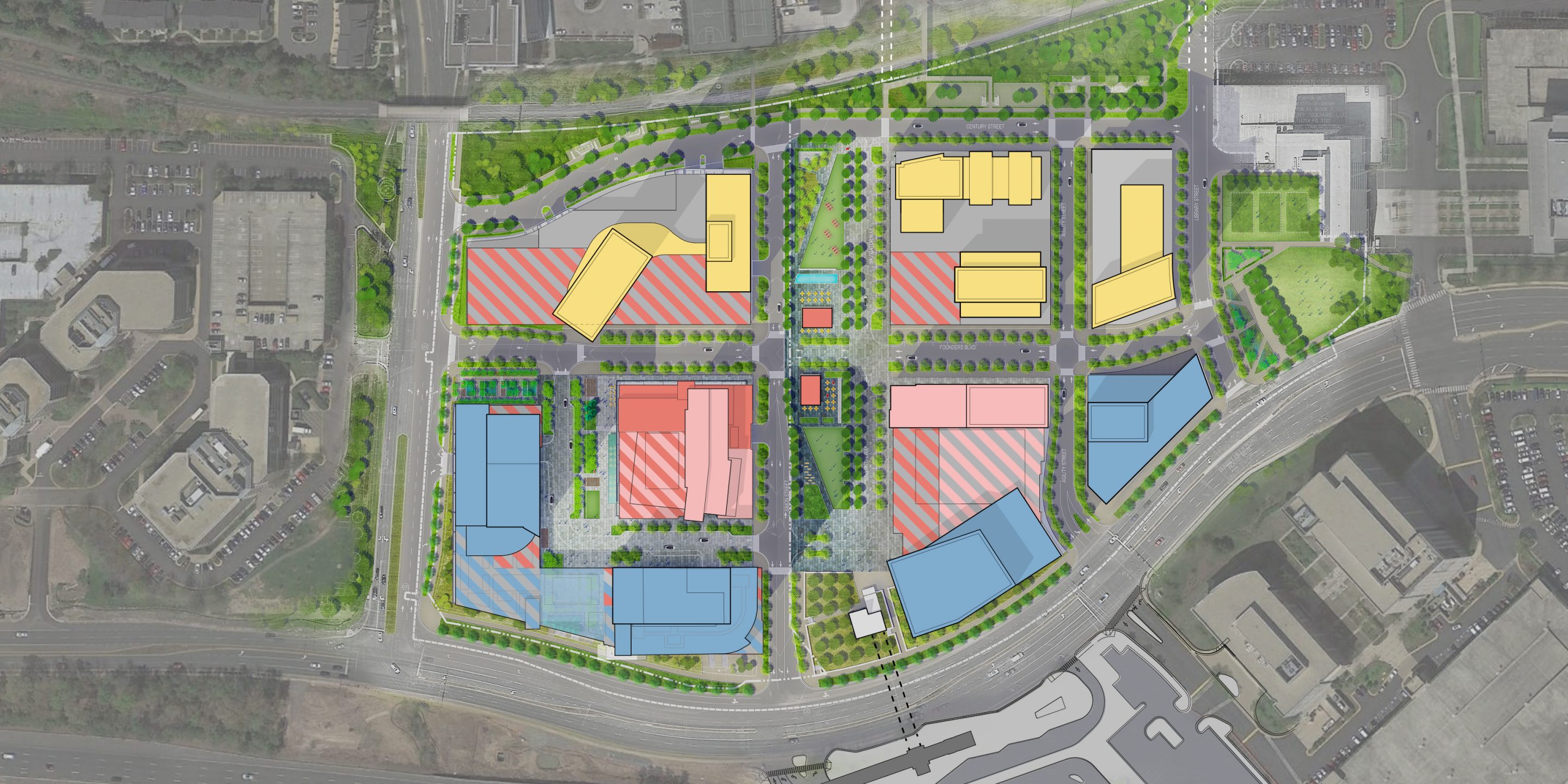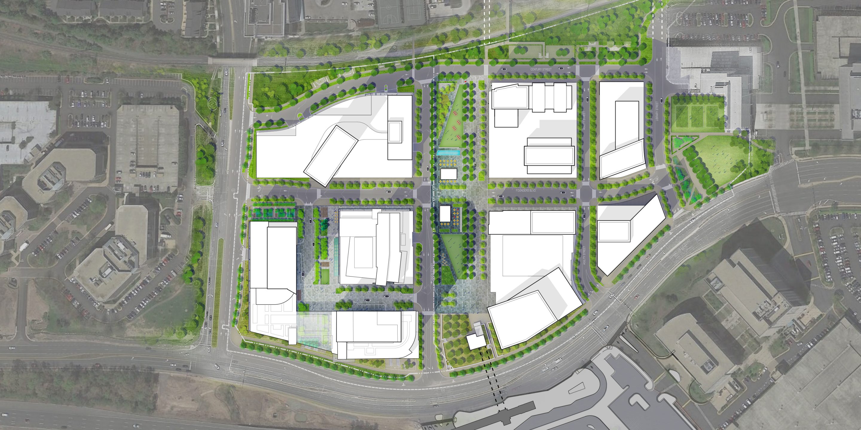 The masterplan includes over 4.4 million GSF of development ranging from corporate office buildings, residential towers, and multiple hotels on an urban street network and block grid. Open spaces are the major organizing feature of the new community with 6.25 acres of passive, active, and recreational areas including a central 1.38 acre park with plazas and greenspaces, as well as connections to the Washington and Old Dominion Trail.