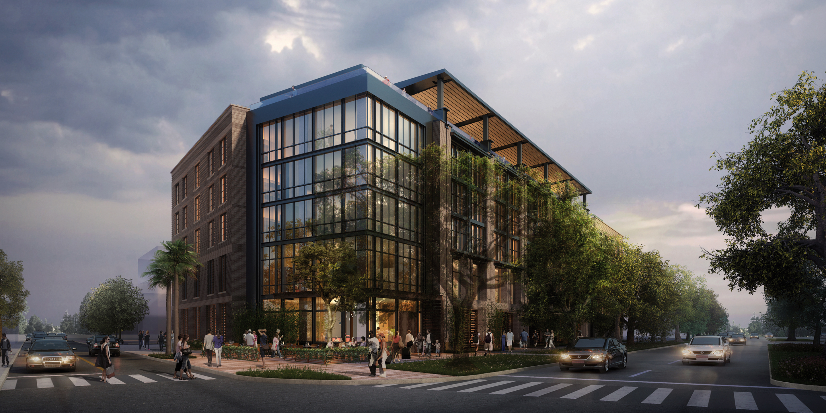 The 100-Key Seven Calhoun Hotel will feature a rooftop pool, bar and restaurant, along with second floor lobby and lobby bar with 1,700 SF of meeting space. The design concept was to create a building of transitional character that recognizes its unique site, located between historic Charleston and the more contemporary Gadsden Wharf. The hotel’s entrance will be from the corner of Calhoun and Concord Streets, which the building’s architecture will highlight with a five story glass and steel expression. The exterior landscaping and the interior spaces have been coordinated to give a seemingly seamless transition from inside to outside.