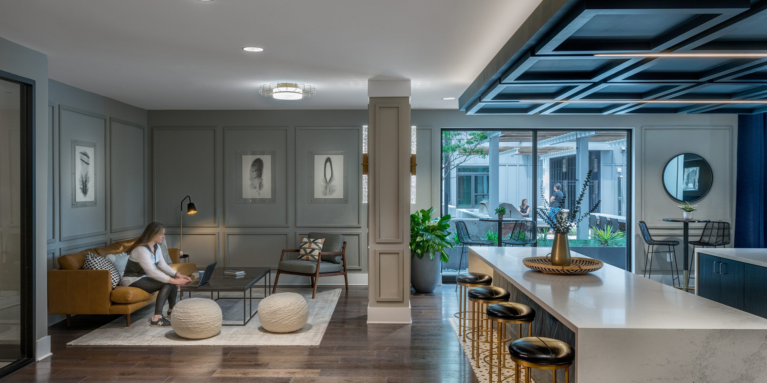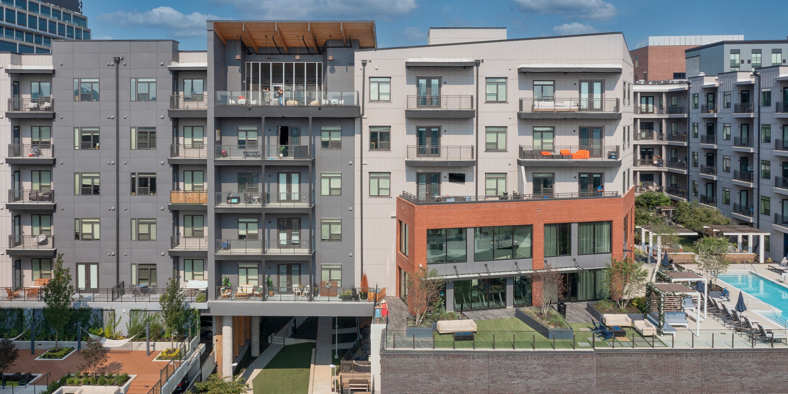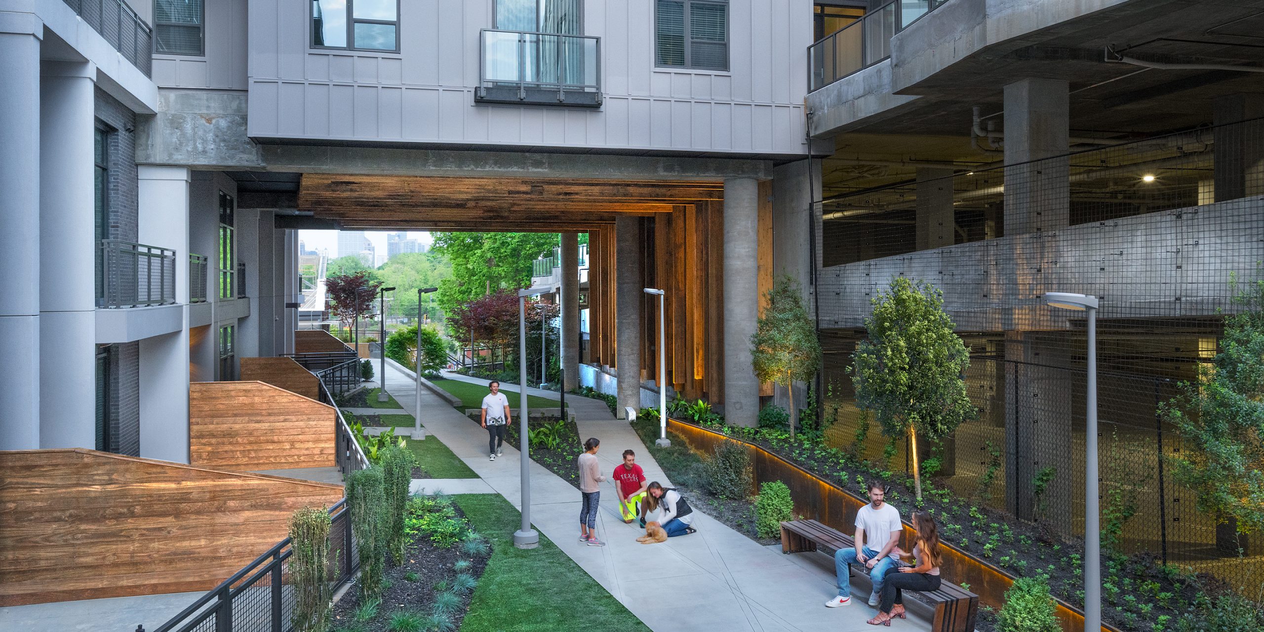 The Interlock is a $450 million mixed-use development in emerging West Midtown Atlanta that combines office, retail, hotel and multifamily. Cooper Carry designed the multifamily portion, known as Windsor Interlock (formerly Solis Interlock). The six-story building offers 7,500 SF of restaurant space, 349 apartment units, and 11 townhomes. Amenities include an infinity edge pool overlooking the Atlanta skyline, a hammock garden, fitness and spa center, gaming parlor with speakeasy bar, co-working lounge and a wine vault. The project was completed in 2020.
