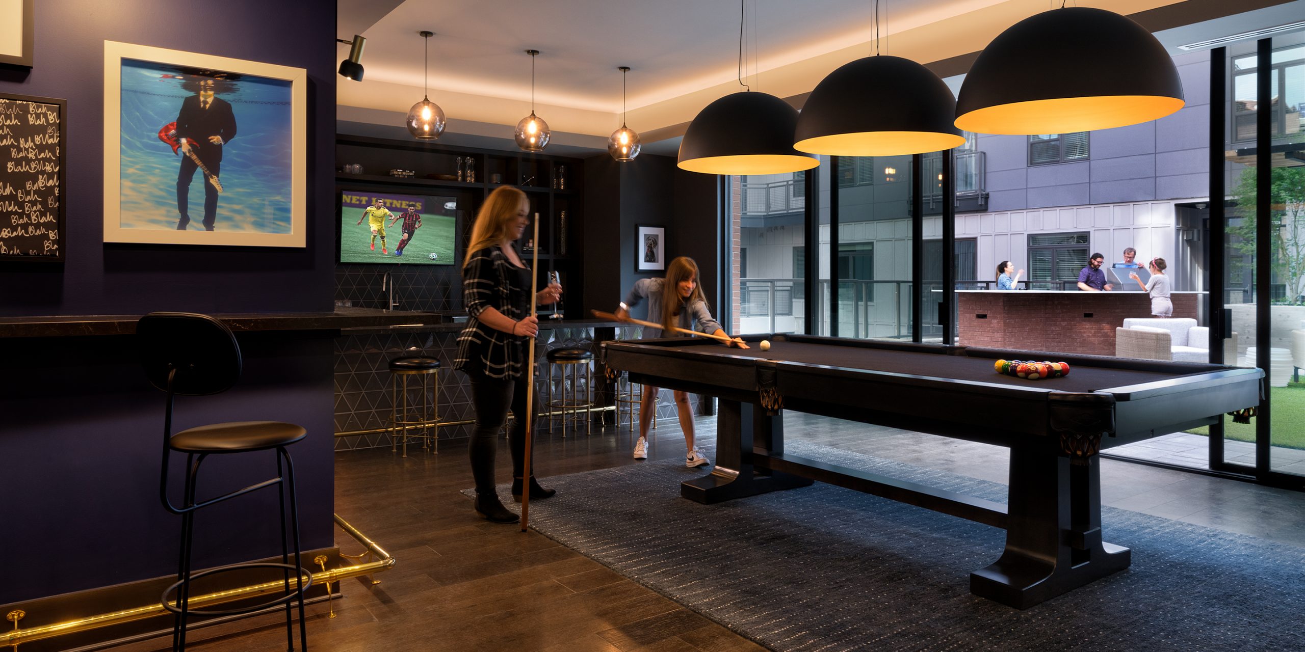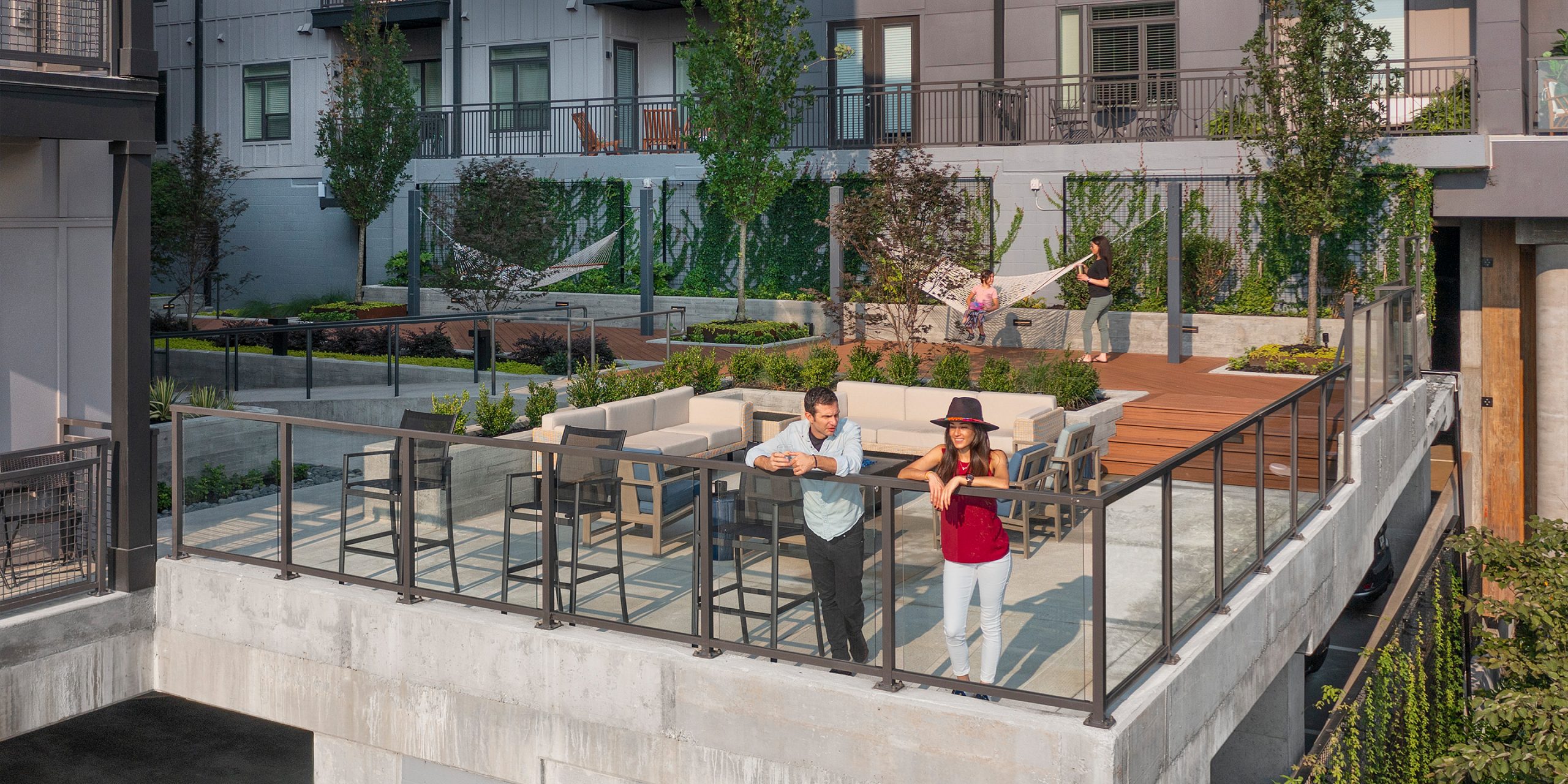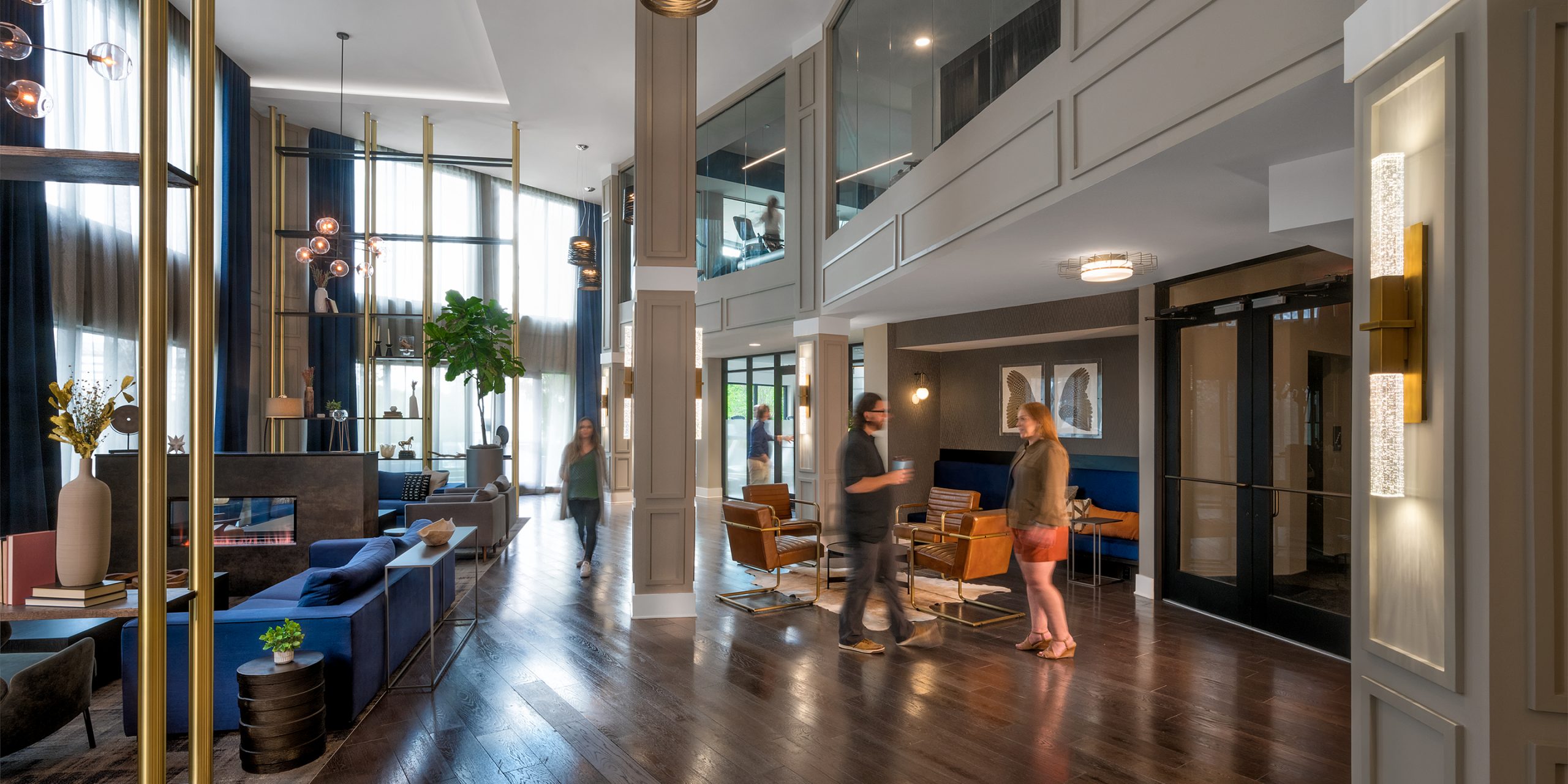 The Interlock is a $450 million mixed-use development in emerging West Midtown Atlanta that combines office, retail, hotel and multifamily. Cooper Carry designed the multifamily portion, known as Windsor Interlock (formerly Solis Interlock). The six-story building offers 7,500 SF of restaurant space, 349 apartment units, and 11 townhomes. Amenities include an infinity edge pool overlooking the Atlanta skyline, a hammock garden, fitness and spa center, gaming parlor with speakeasy bar, co-working lounge and a wine vault. The project was completed in 2020.