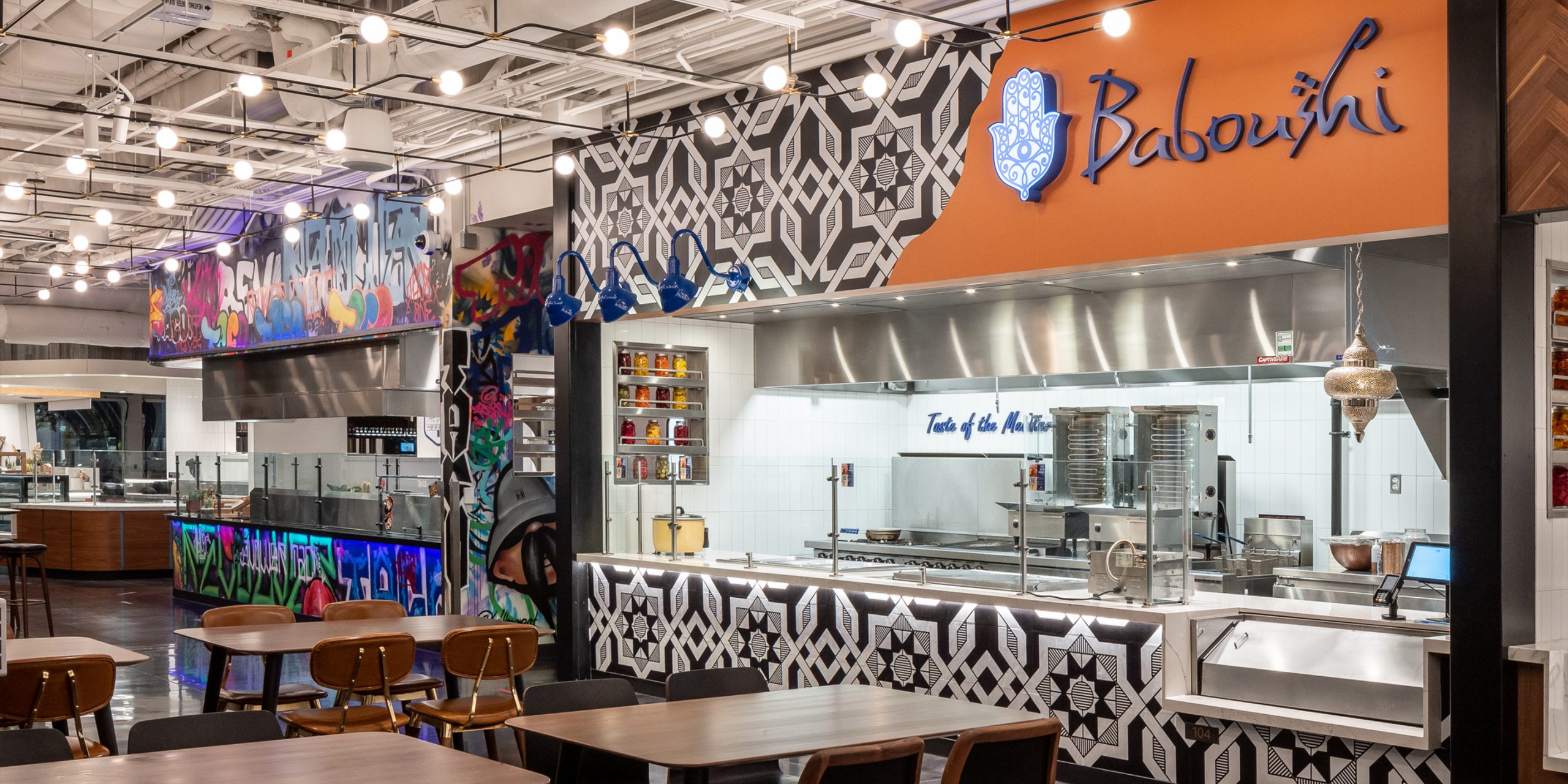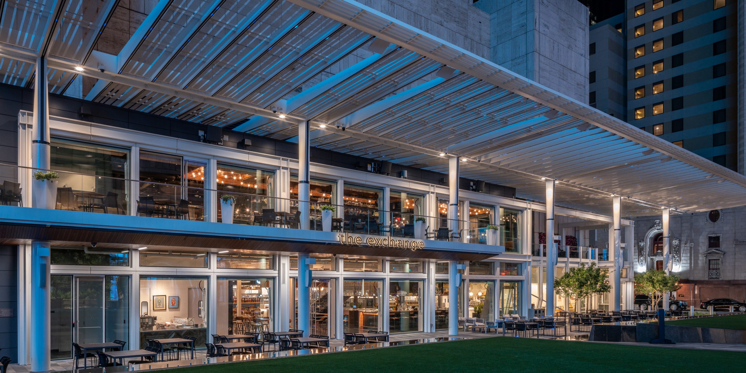 Cooper Carry designed The Exchange food hall at AT&T Discovery District as part of the adaptive reuse of AT&T’s 2.5 million-square-foot (SF) Dallas headquarters into a mixed-use, entertainment-filled, food-anchored experience for AT&T employees and the downtown community. Located in a 1970s-era space that once served as a telecommunications call center and spanning 26,700 SF, The Exchange features two levels of bars and eateries from a diverse roster of chefs as well as a multitude of indoor-outdoor dining spaces overlooking the District’s high-definition, nine-story digital media wall. Each vendor stall inside features a unique façade to reflect the distinct offerings and personality of each culinary concept. The cohesive space was maintained through the use of consistent materials and colors throughout the hall, and special areas for taking photos were created to make the space interactive for users. The project opened in 2021.