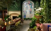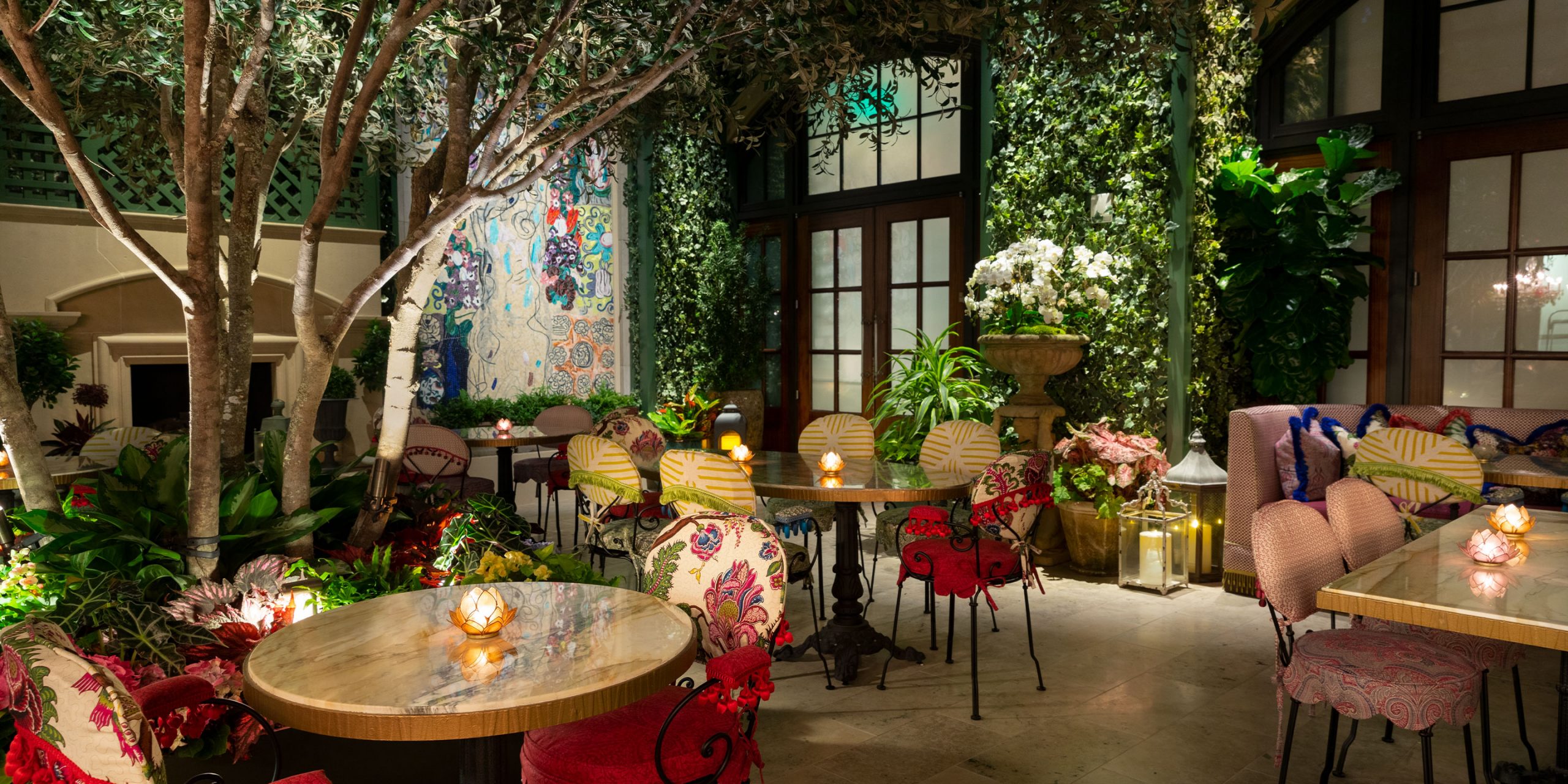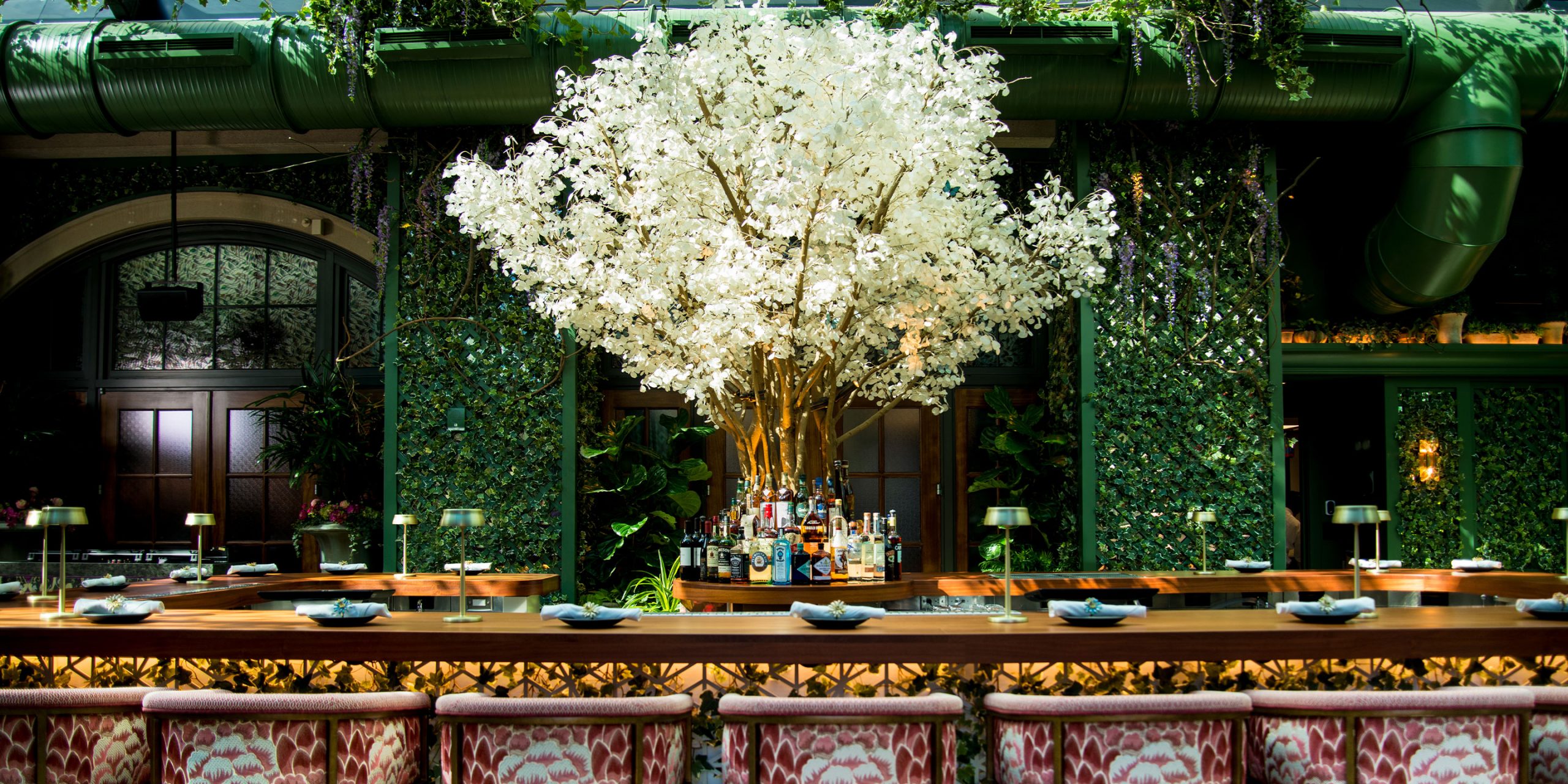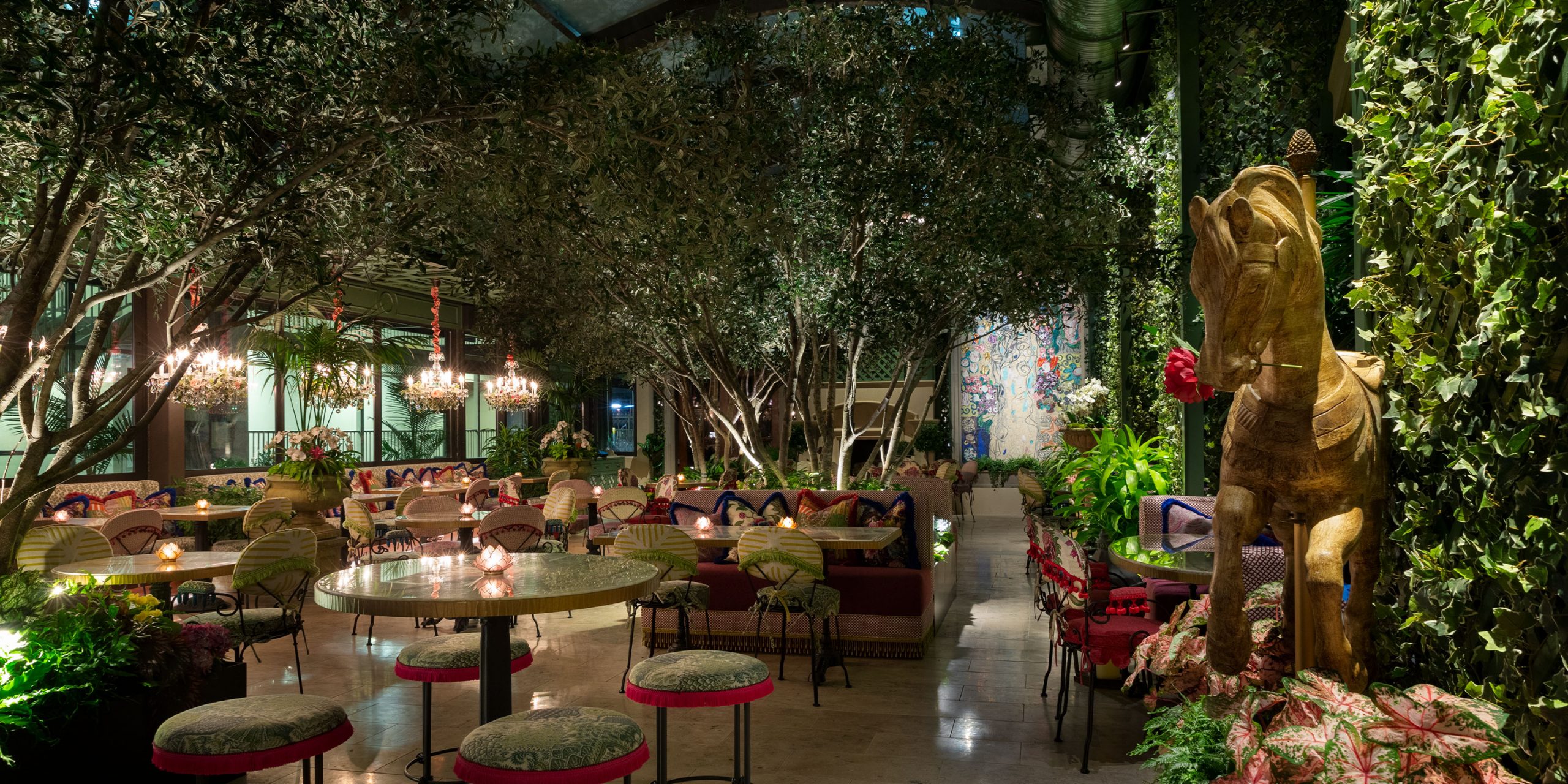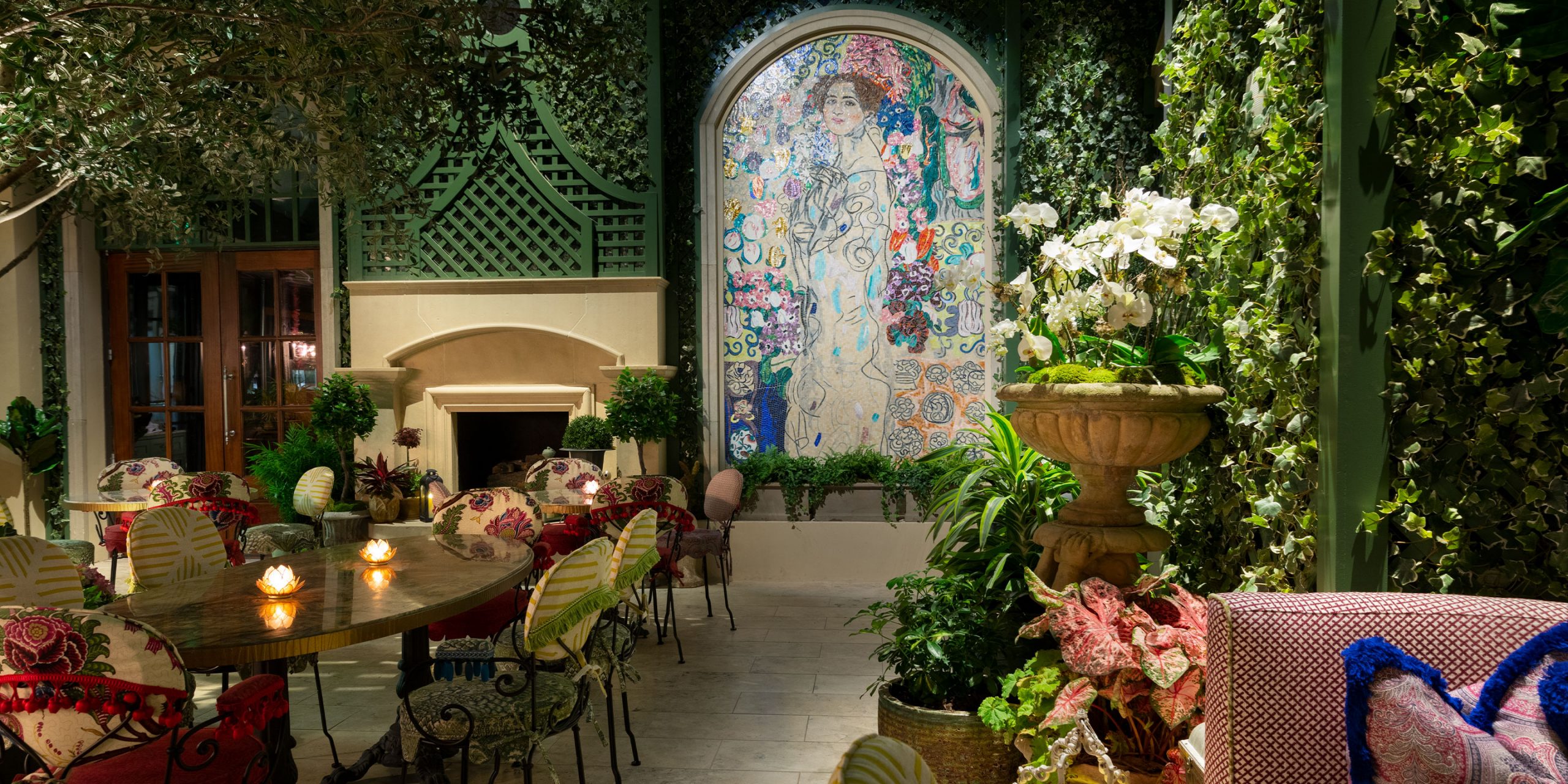 Atlas is known for its rotating gallery of impressive works from The Lewis Collection, one of the world's largest private collections of 20th-century artwork including pieces by Picasso and Monet. Commissioned by The Johnson Studio and made in Italy with hand-cut glass tiles, a mural reinterpreting one of Gustav Klimt's portraits of Ria Munk pays homage. The Garden Room won ICSC's 2021 Restaurant Design award.