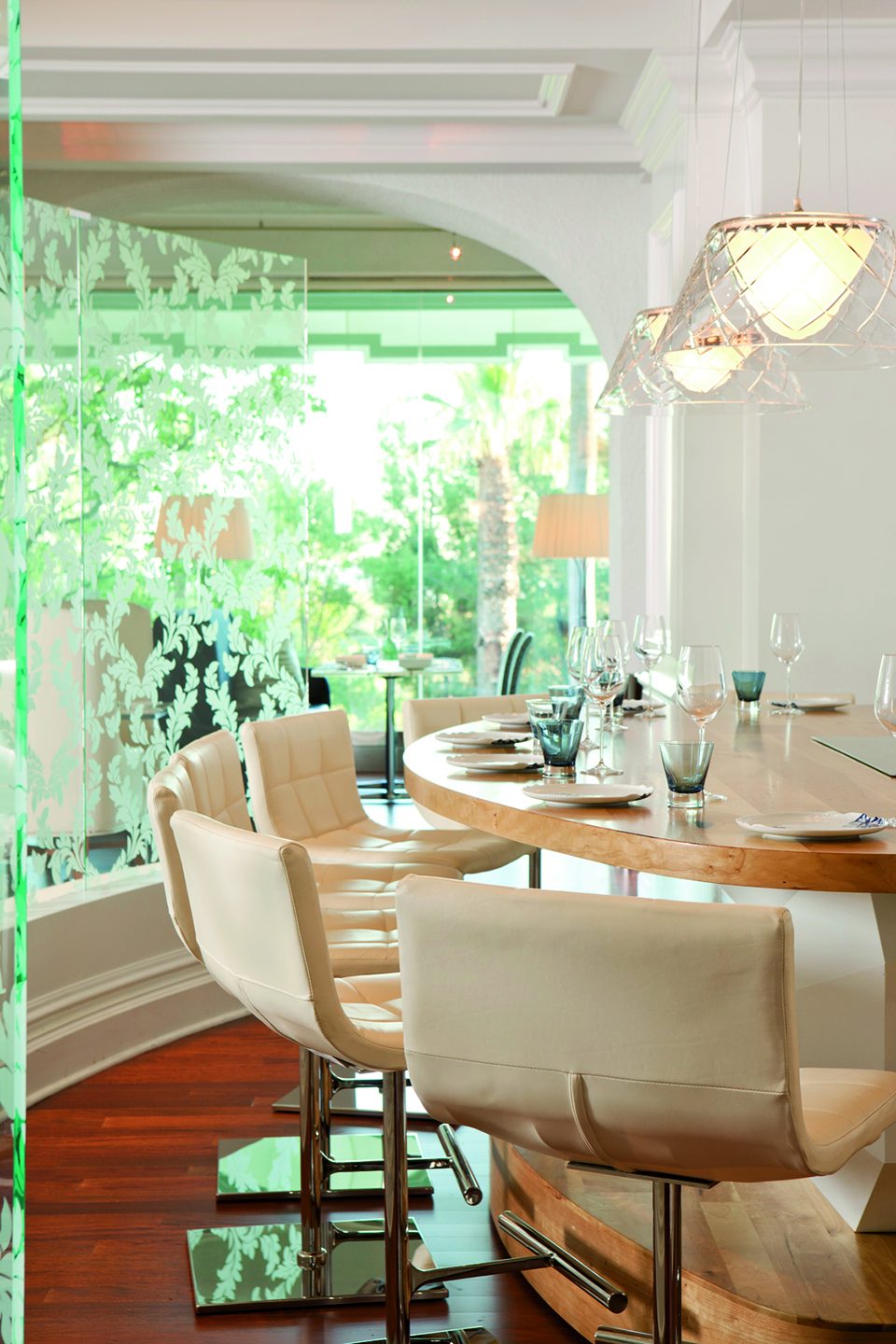 An exceptional discovery in the iconic Langham Pasadena Hotel, the Royce, with juxtaposed traditional and modern elements, blends classic design with Southern California flair. The dramatic entrance is flanked by gorgeous glass wine rooms … one for white and one for red. The crystalline Chef’s Table room is the interior focal point; while the Langham’s beautiful garden setting is featured from the expanded Veranda room. This project was a renovation and expansion of an existing dining room and makes use of many pre-existing elements that have been re-worked into a new life.