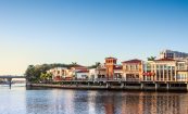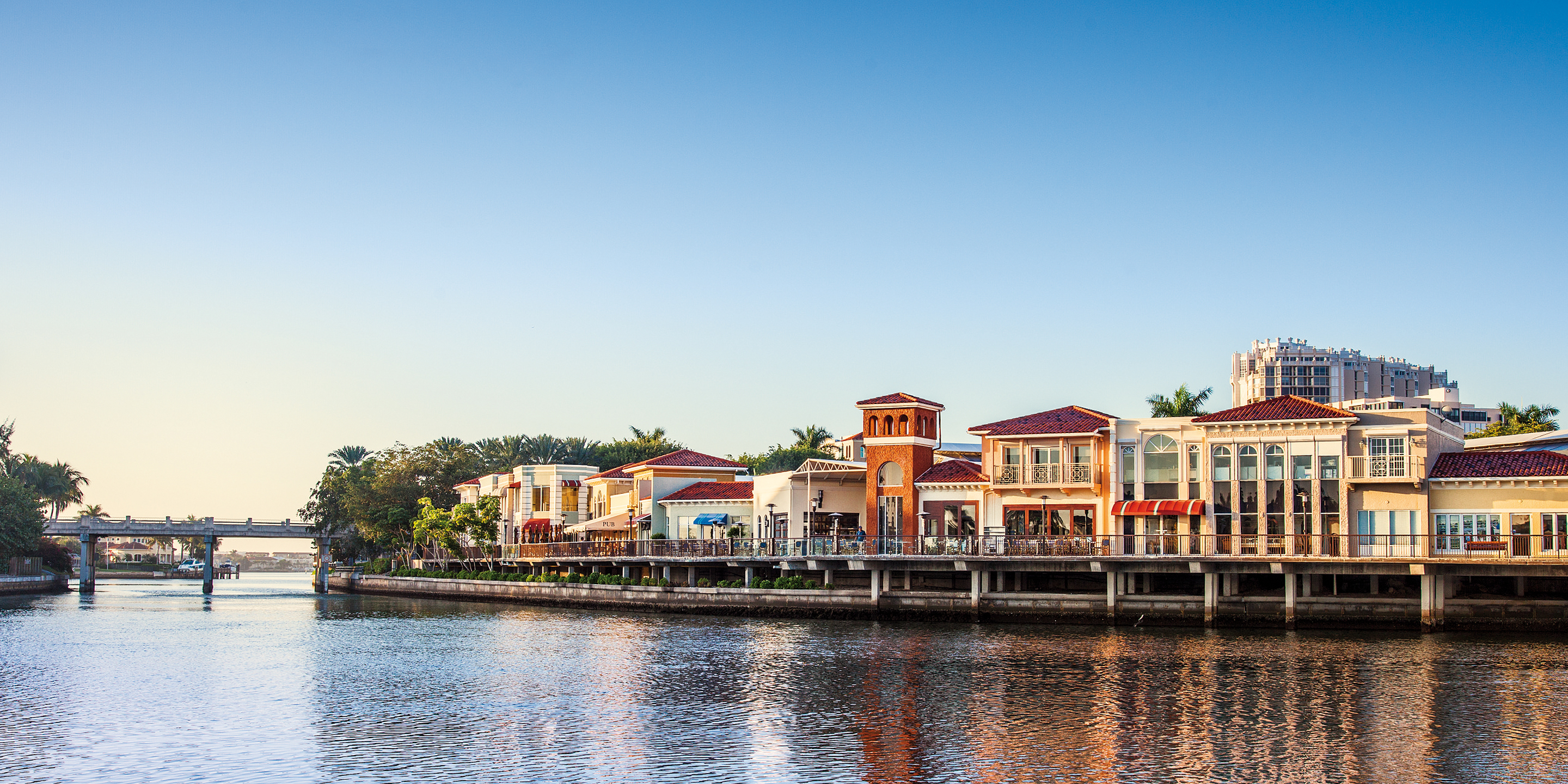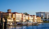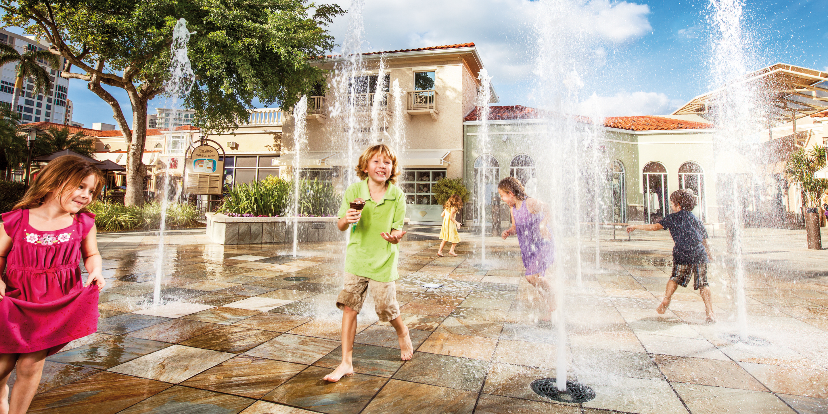 Long loved by locals and tourists alike, the iconic Village on Venetian Bay was in need of an update in response to the many new shopping venues appearing in Naples. An anomaly in the retail world, this center is not on the main highway but on the edge of a residential community. Designed as one of the original Mediterranean style developments in the region, it had outdated colors, sight line impediments, and lacked shopper amenities commensurate with the shoppers’ desires. New tile paving was integrated into the pedestrian paths reminiscent of the cobblestone walks found throughout Venice. Glass guardrails were installed at lines of sight, connecting the center to the water. Soft but effective lighting was added throughout. A new interactive fountain was also added that has become a wildly successful attraction for children.