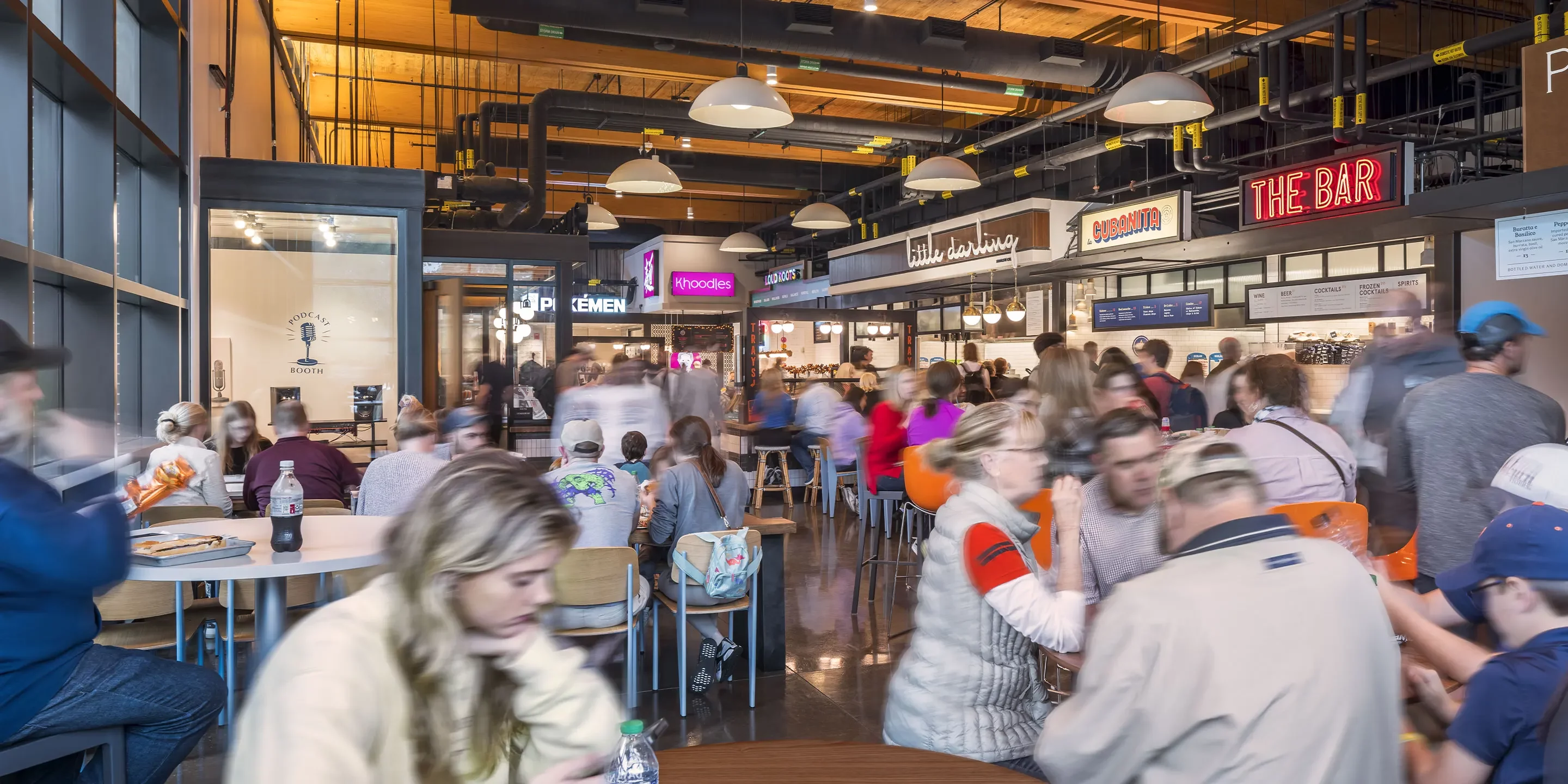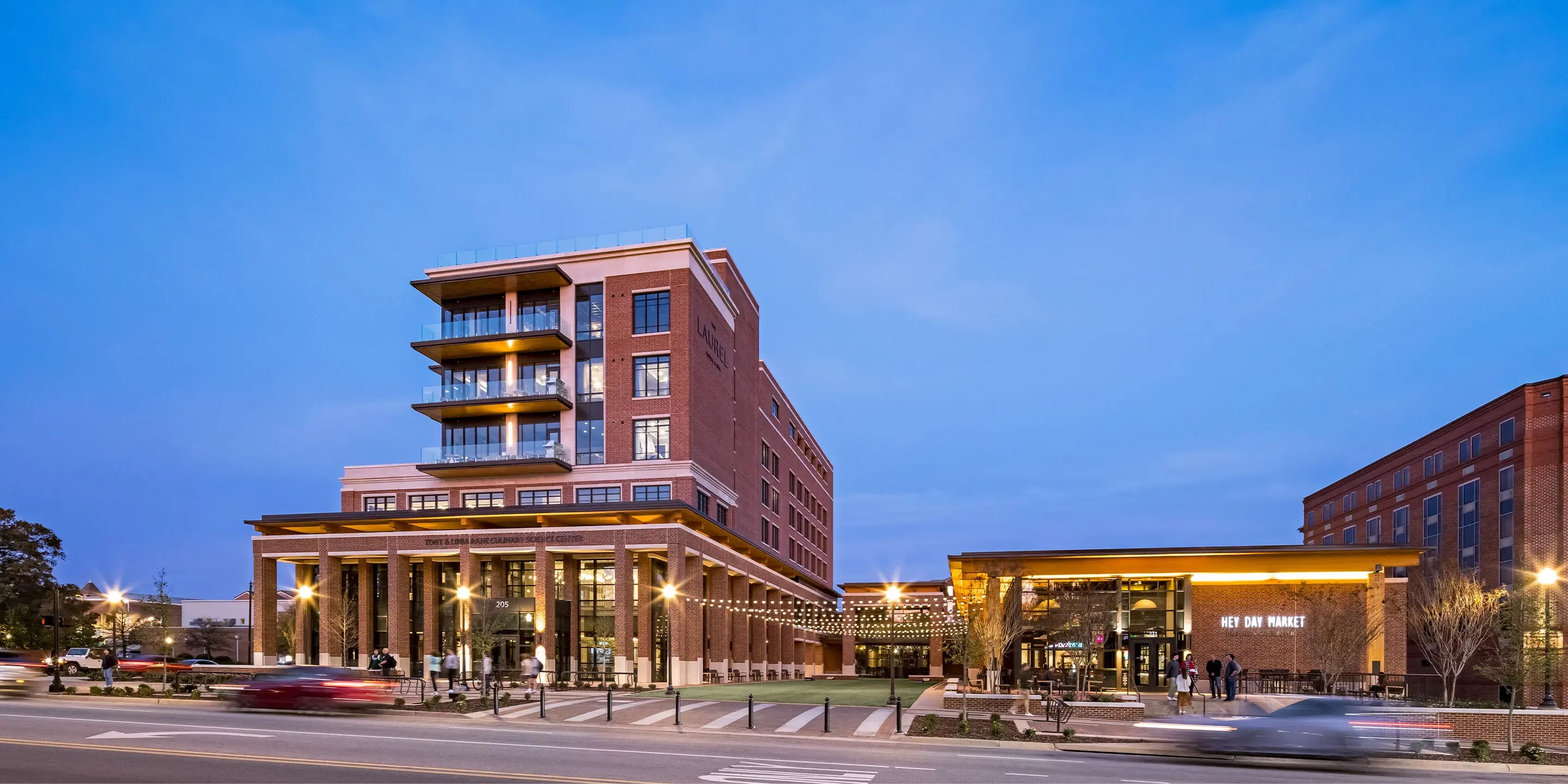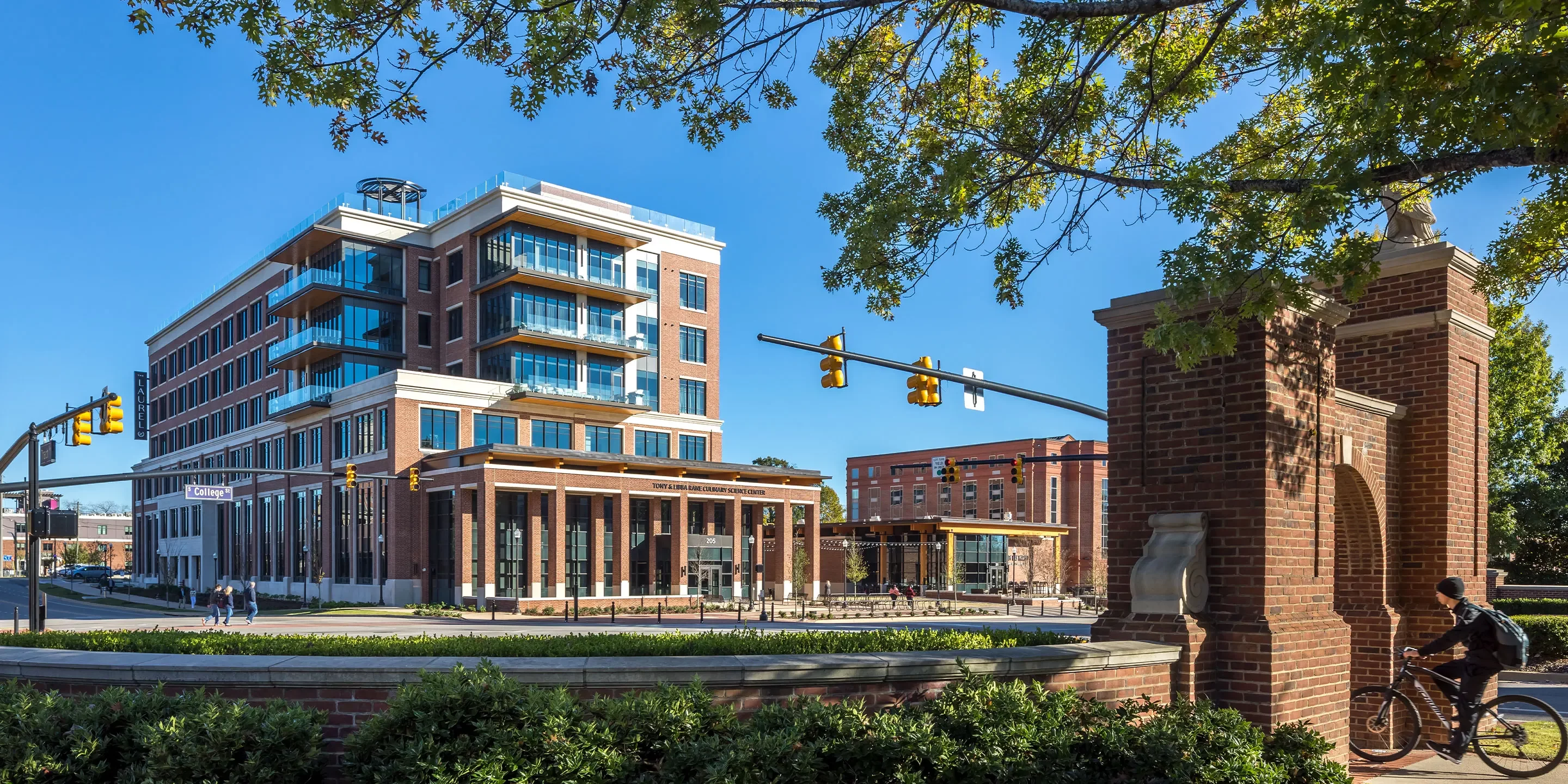Given the site's proximity to downtown Auburn, we carefully considered urban planning impact and the connection between academics and commerce. The site’s open design invites members of the community to explore the foodhall, courtyard, restaurant, hotel and rooftop.