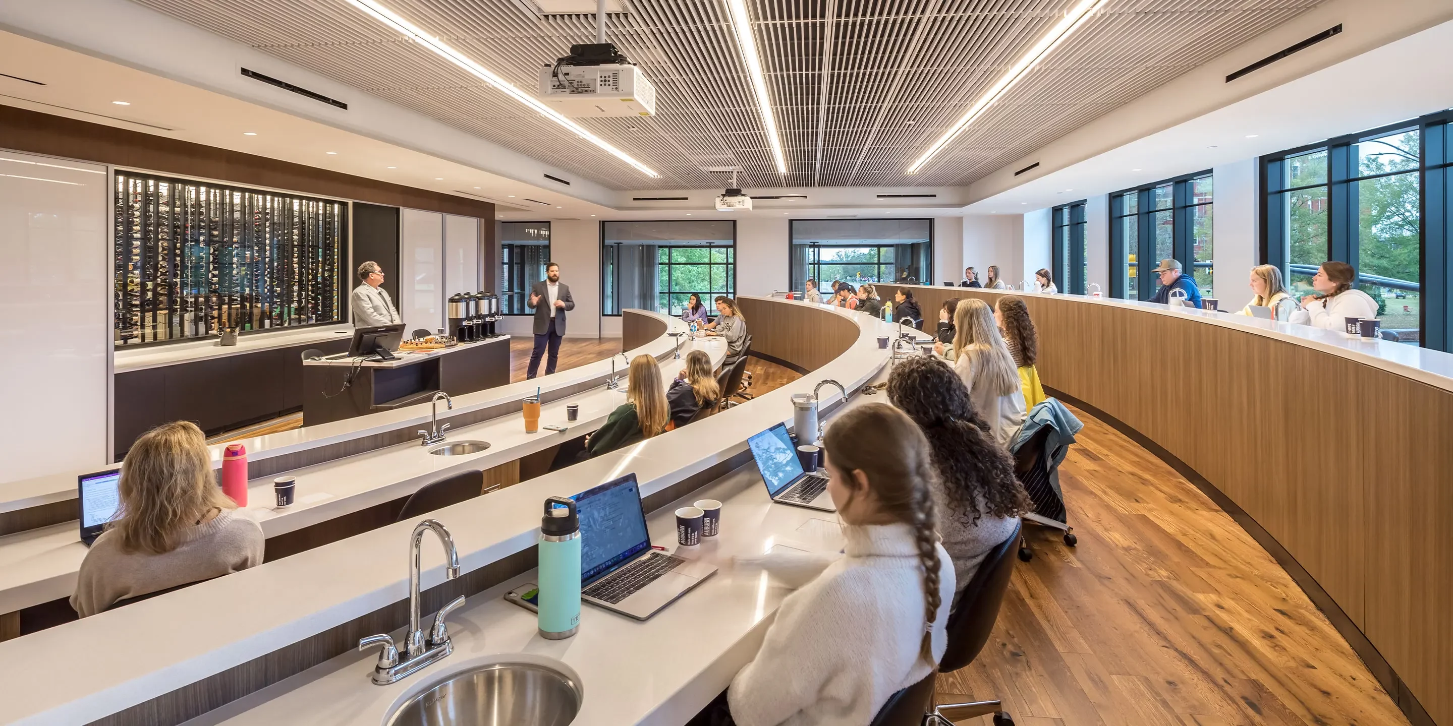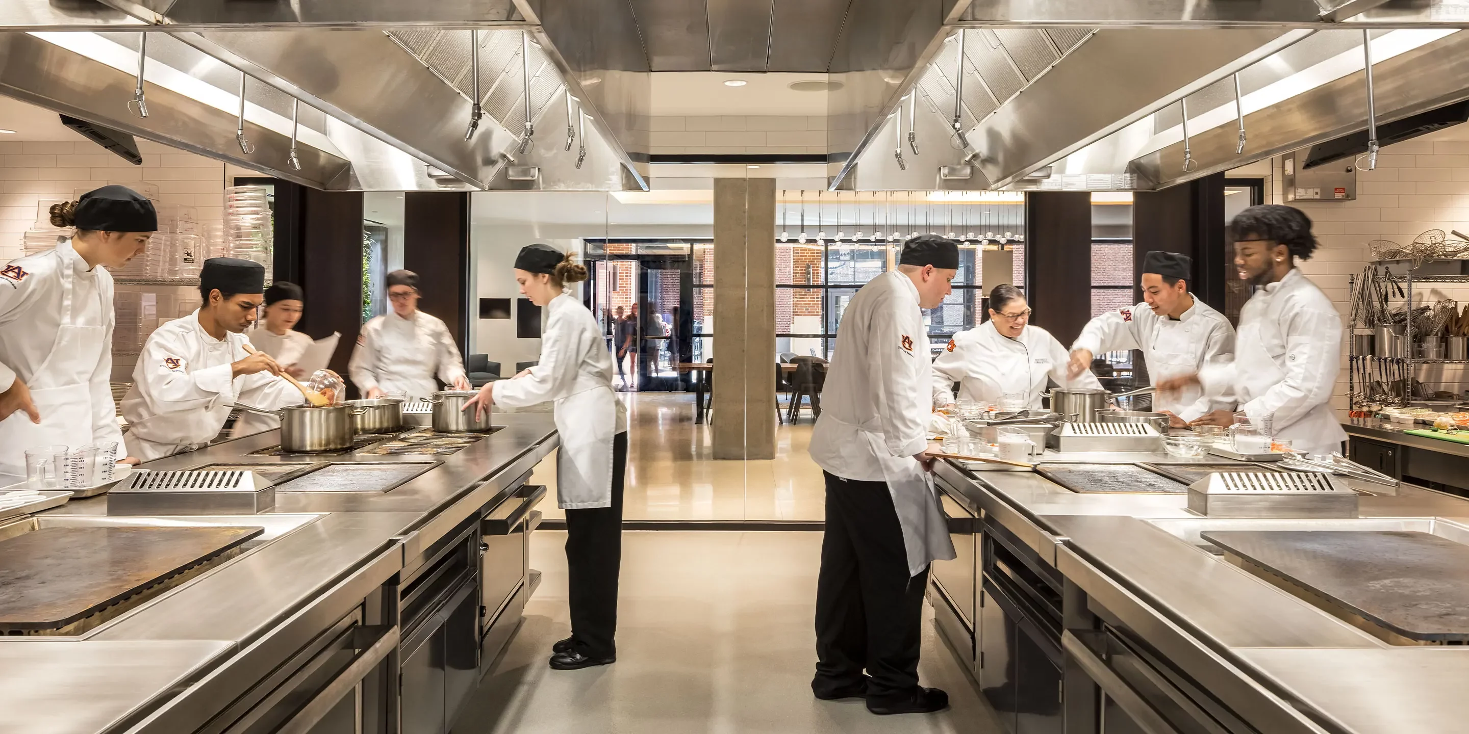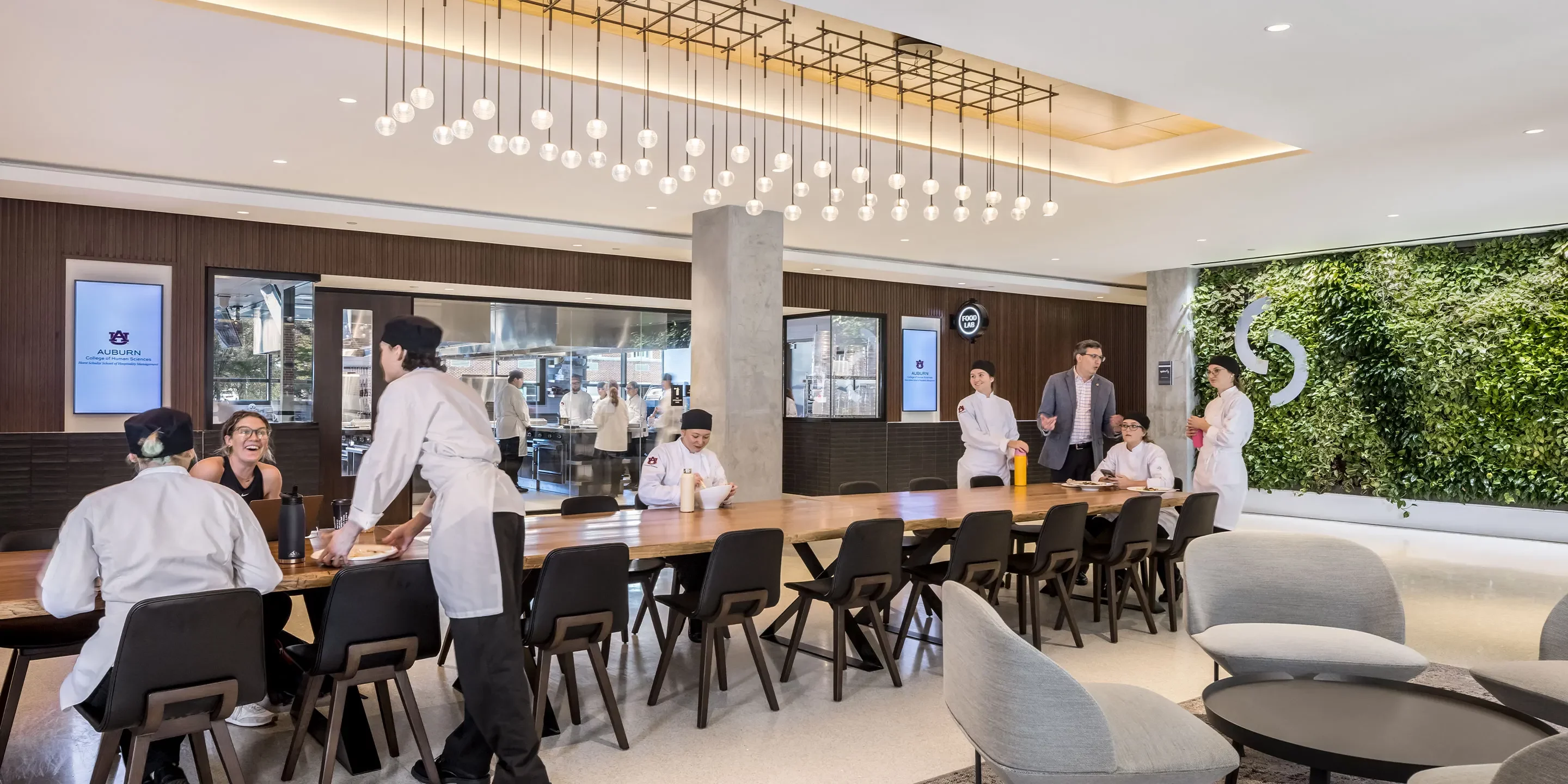 The Tony & Libba Rane Culinary Science Center, a 142,000-square-foot center located on the edge of Auburn University's campus, serves as an academic resource for students interested in food and beverage or hospitality-focused careers, providing access to real-world learning experience. The center supports the nascent culinary science and hospitality program to connect excellent food and hospitality to personal well-being and development. This project is a perfect integration of expertise from Cooper Carry's Higher Education Studio, Hospitality Studio, Science + Technology Studio, and The Johnson Studio.