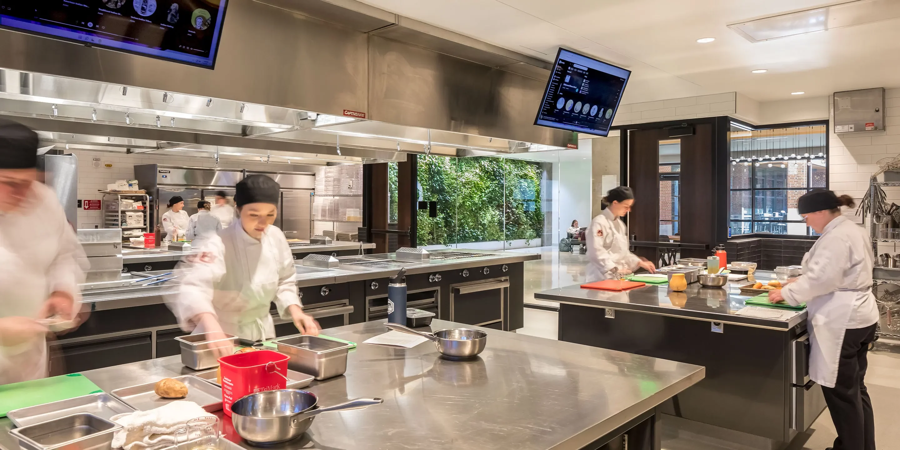 The Rane Center is a complex compilation of multiple building types that include The Laurel Hotel and Spa, a teaching restaurant, bakery, incubator center, culinary classrooms, instructional laboratories, functioning rooftop garden, food hall, café, courtyard as well as collaborative spaces. The Hey Day Market provides promising culinary graduates the opportunity to create a startup for their restaurant concept with two stalls set aside for incubators. If their concepts become successful, they can graduate into a larger stall, an on-campus location, or an off-campus restaurant.
