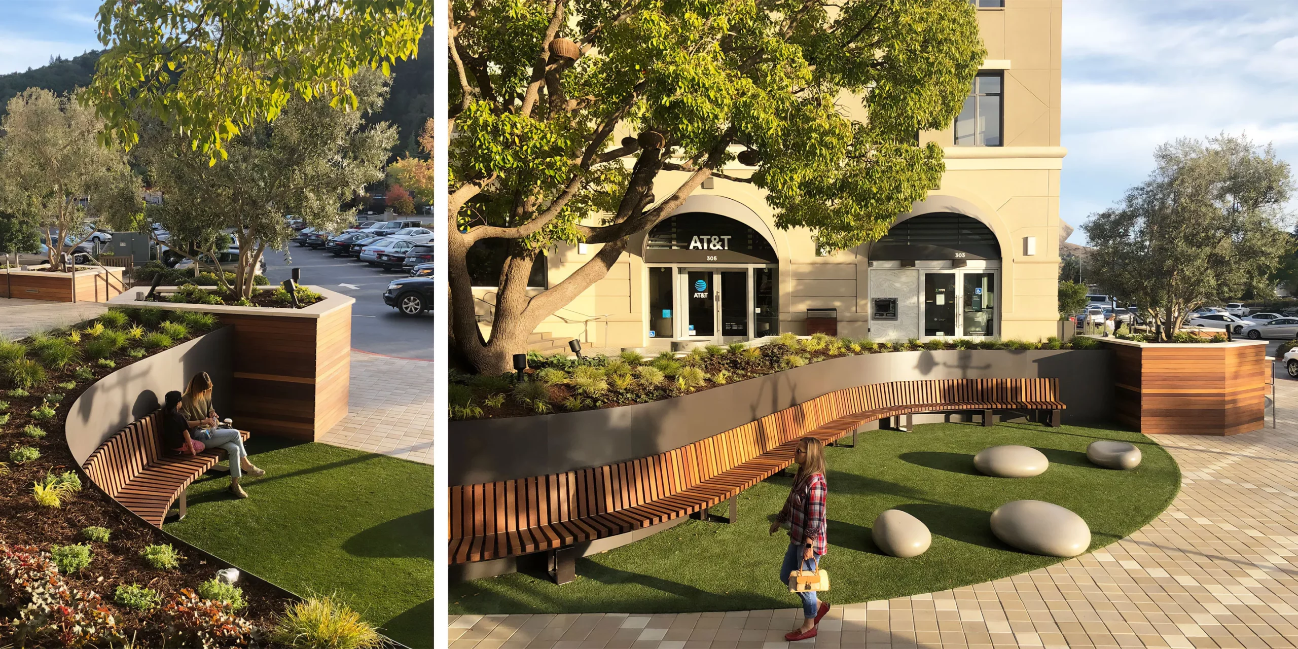 Town Center Corte Madera is a 370,000-square-foot complex that combines conventional retail in a community-friendly complex. The heart of our work centered around creating a memorable and lively atmosphere as a means of enhancing the visitor experience and providing a unique identity in the market. Our design team revitalized the center by creating a richly layered, public environment that celebrates the Marin lifestyle. With pedestrian passageways, whimsical fountains, and ample seating areas, the center promotes community gathering and people watching. Natural materials were used in the design, including brick, wood cladding, and stucco. Classic-styled streetlamps line the passageways, providing a cozy glow at sunset.