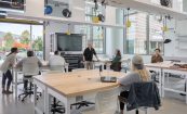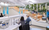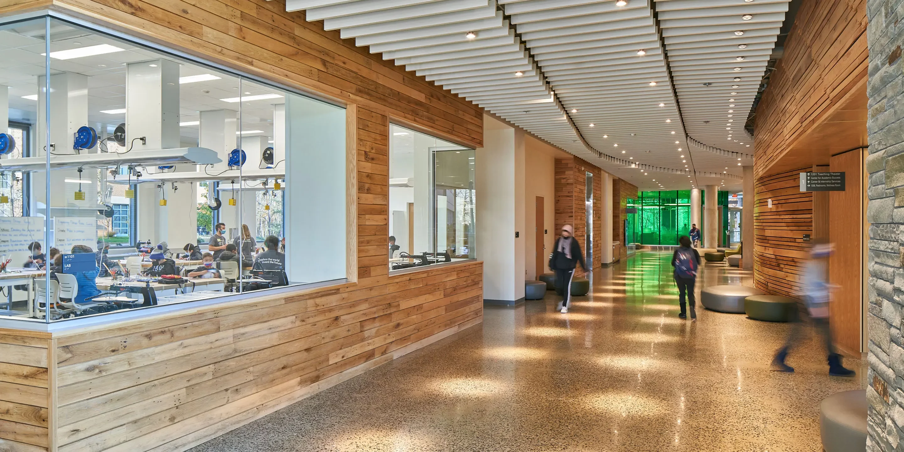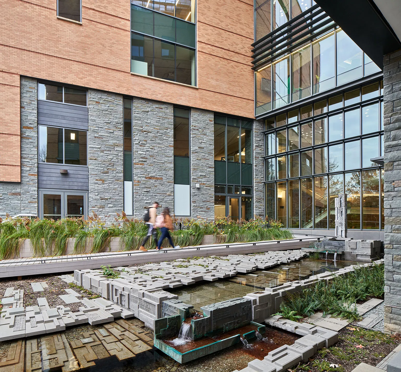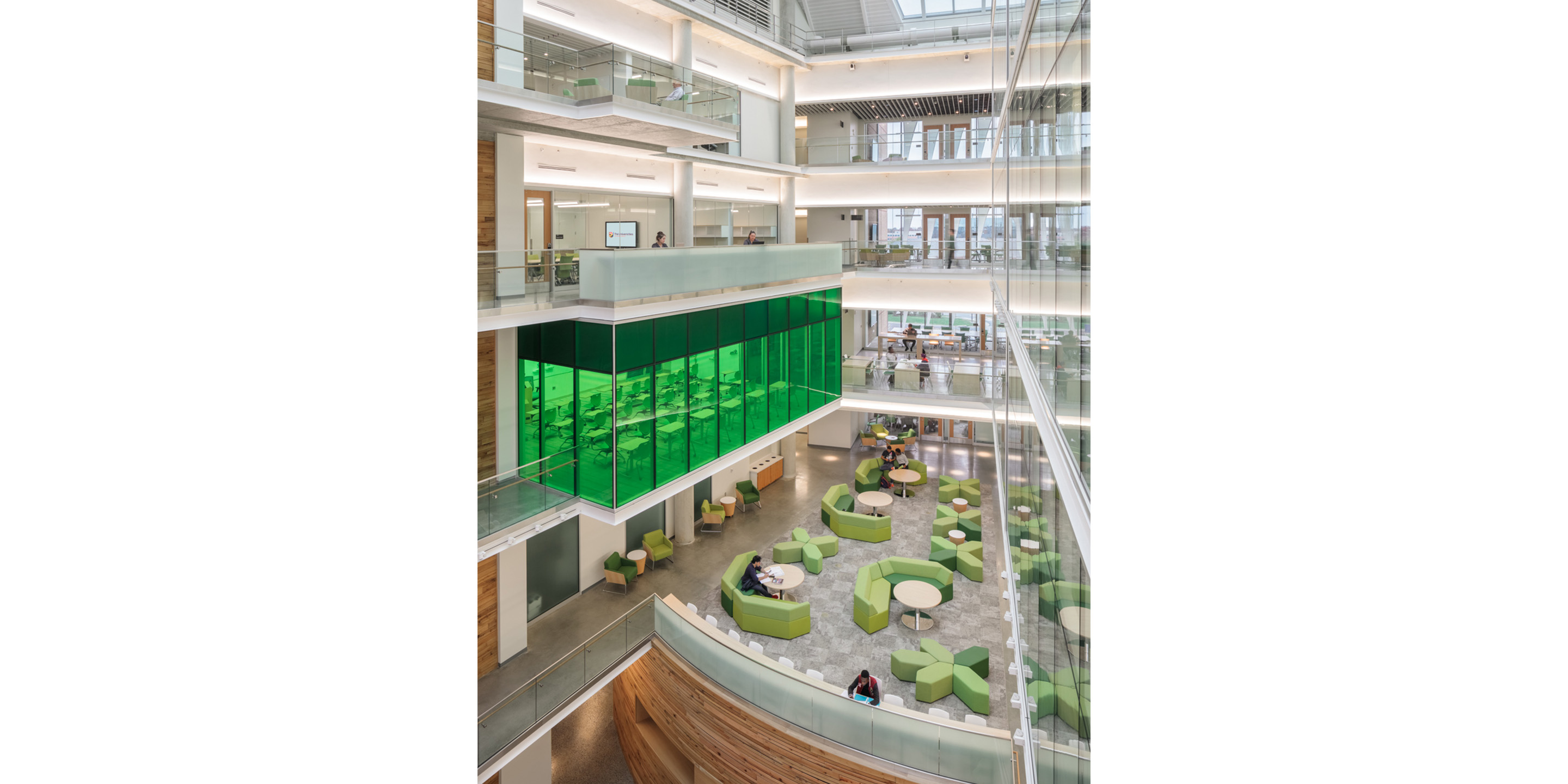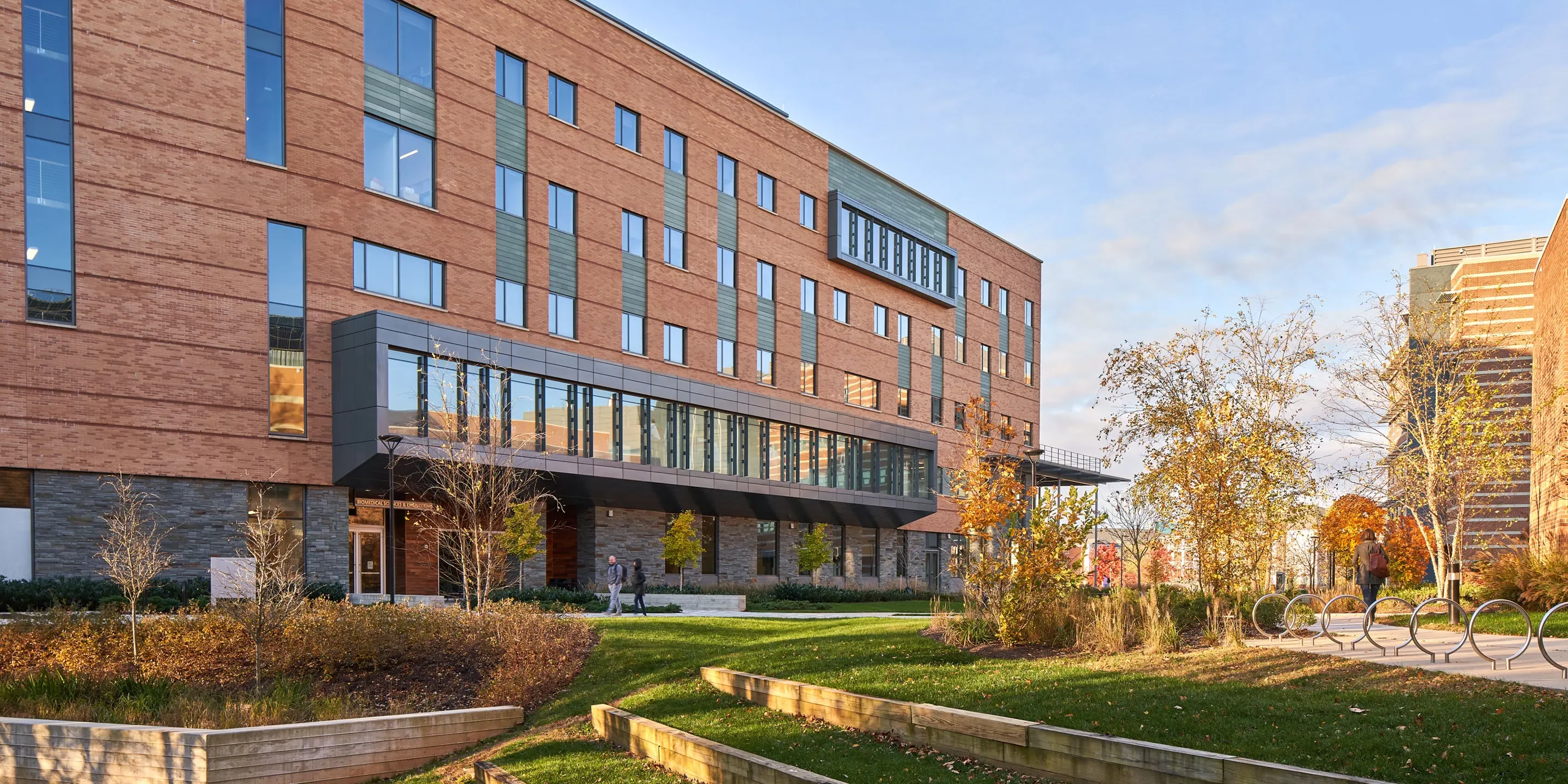 The 228,000 square-foot building houses academic programs in physical therapy, dentistry, mechanical engineering, biotechnology, biological sciences, electrical engineering, environmental science and technology, and associated fields. The new building provides spaces for general instruction, scientific instruction, a full dental clinic, offices and administrative support, student support centers, and building systems and support. The design includes a central atrium gateway space, tiered classrooms, and glass enclosed labs that promote the idea of “science on display.”