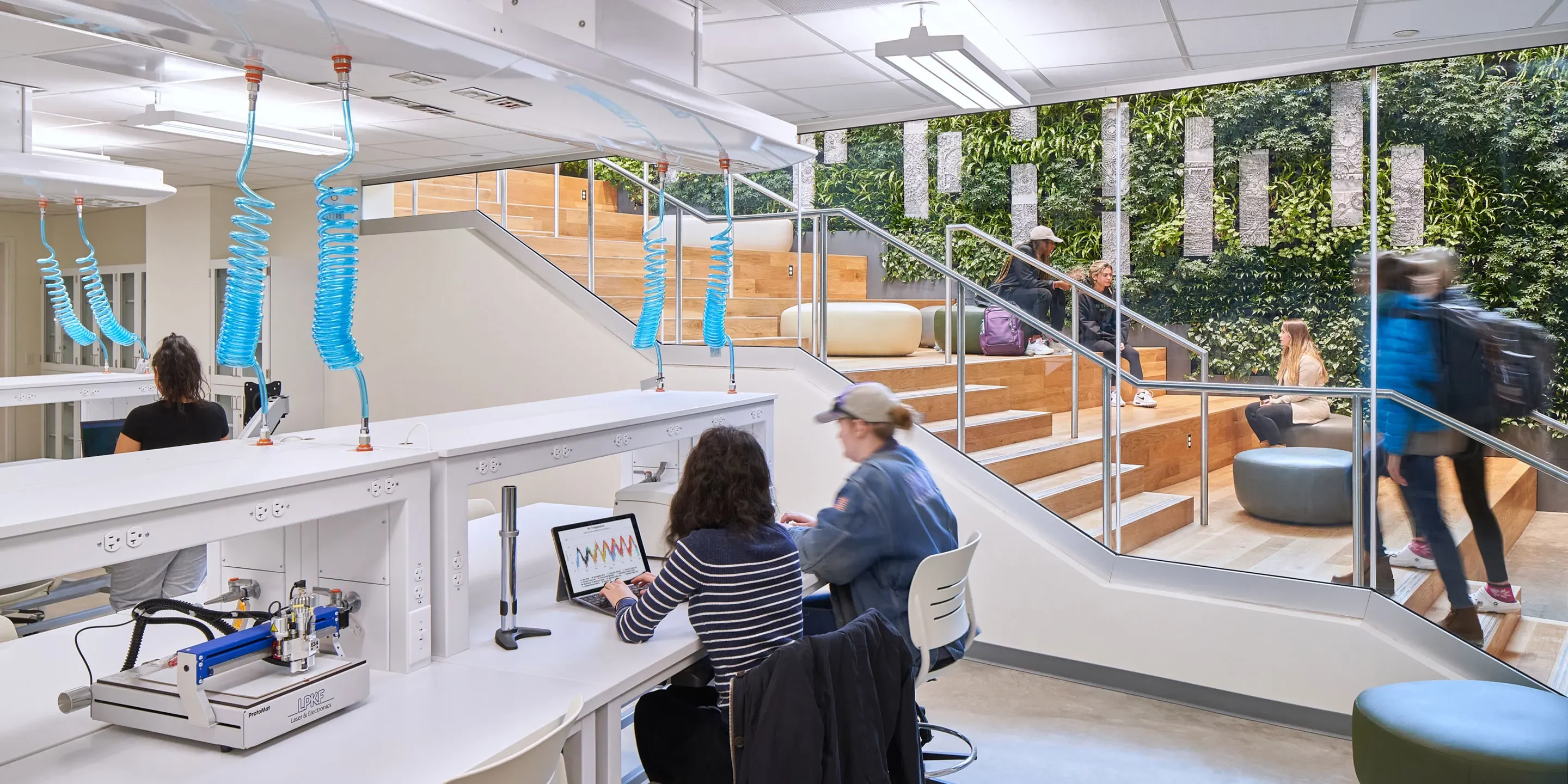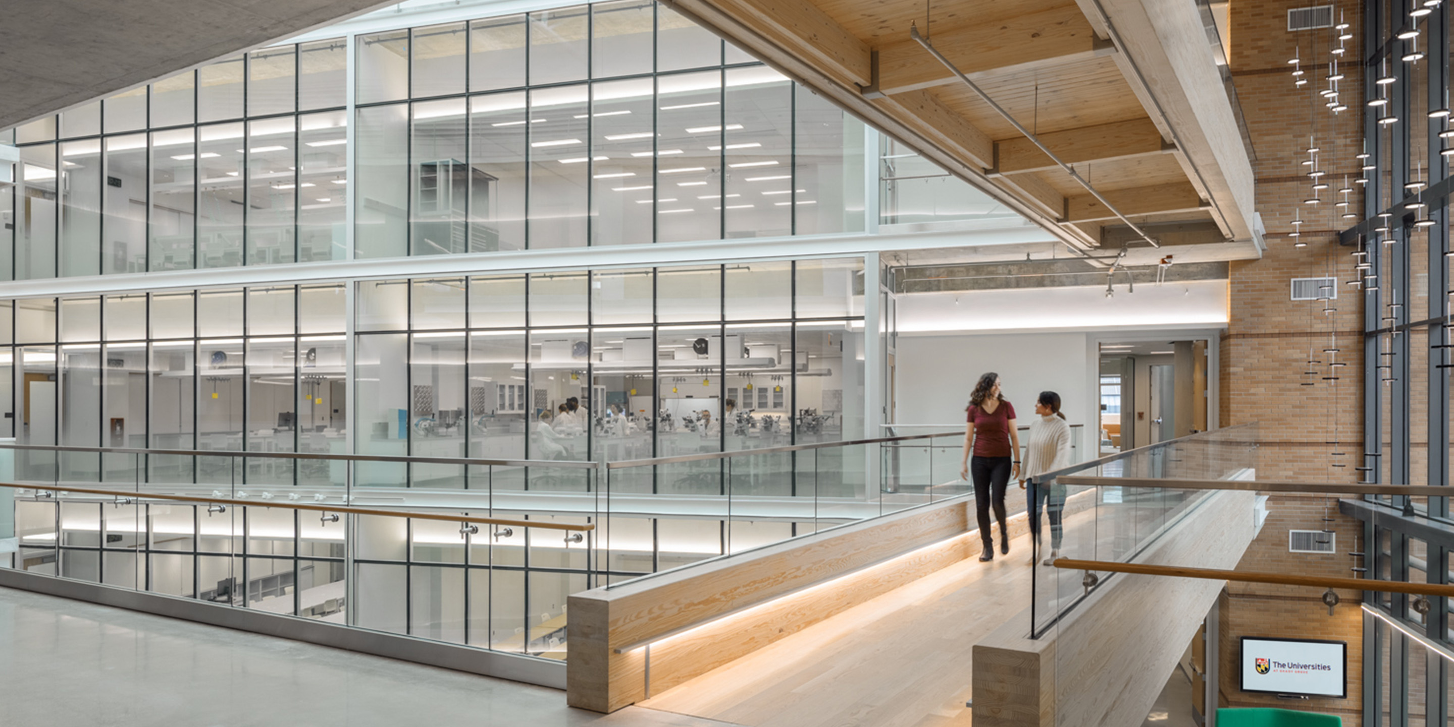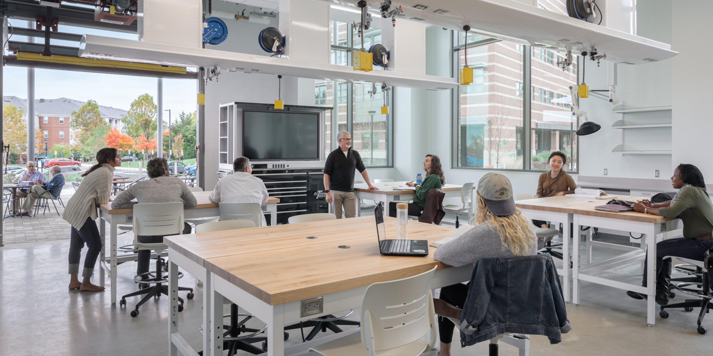The Biomedical Sciences and Engineering Education Facility enhances the collaborative efforts at the Universities at Shady Grove of nine sister institutions to offer advanced degree education in high technology and medical sciences fields, and to share instructional facilities across disciplines and degree programs. The Universities of Maryland in College Park, Baltimore, and Baltimore County share the facility with the common goals of advanced education, collaboration, and curricular innovation.