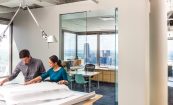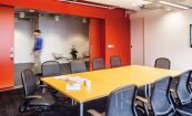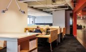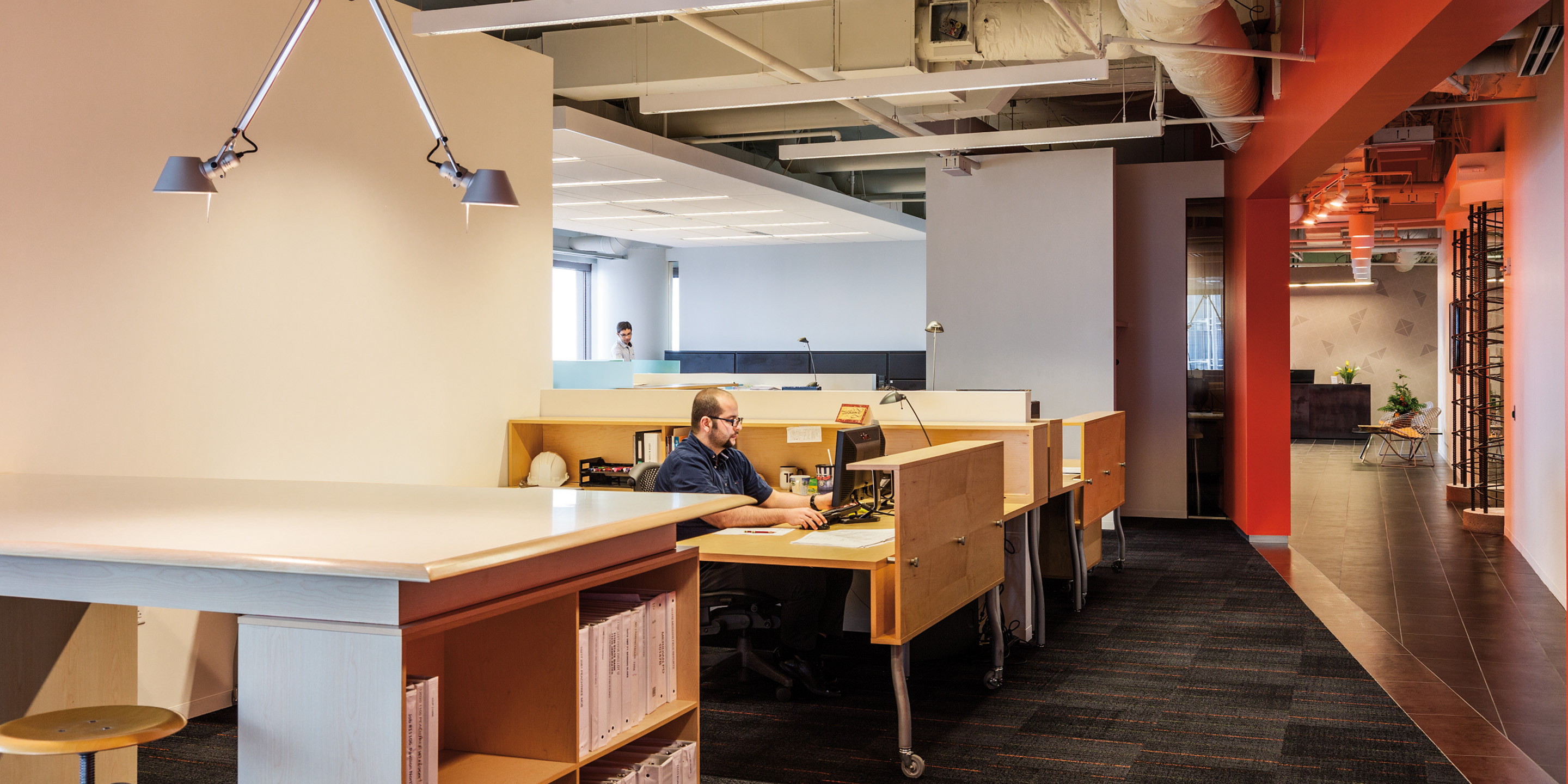 In the fall of 2012 Cooper Carry was approached by our long standing structural engineering partner, Uzun & Case, to design their new Office Workplace space. Situated mid-way up the Promenade II building, in midtown Atlanta, the firm’s new home consists of 13,500 sf of the twenty-fifth floor with unobstructed southern views of the Atlanta skyline. A careful analysis of their existing furniture inventory and desired program requirements revealed a difficult space planning challenge, but an insightful solution was discovered which allowed their personnel goals to be met despite the tight constraints of the building footprint and column grid. Structural steel rebar columns flank the main entrance while a powerfully, colored feature wall draws you in. Once inside, the wedge shaped form of the reception lobby, and borrowed natural daylight from the sixteen foot wide opening in the wall draw you toward the reception and conferencing area. This feature wall is revealed across the entire floor plan and provides hints and peeks of the wall from every corner of the office, serving to unify and link the studios on both sides of the floor plan. With open office space, low collaborative workstations, and the inclusion of clear glass sidelights in all of the corner office, the space is bathed in natural light and provides for an enhanced new work environment for the Uzun & Case staff.