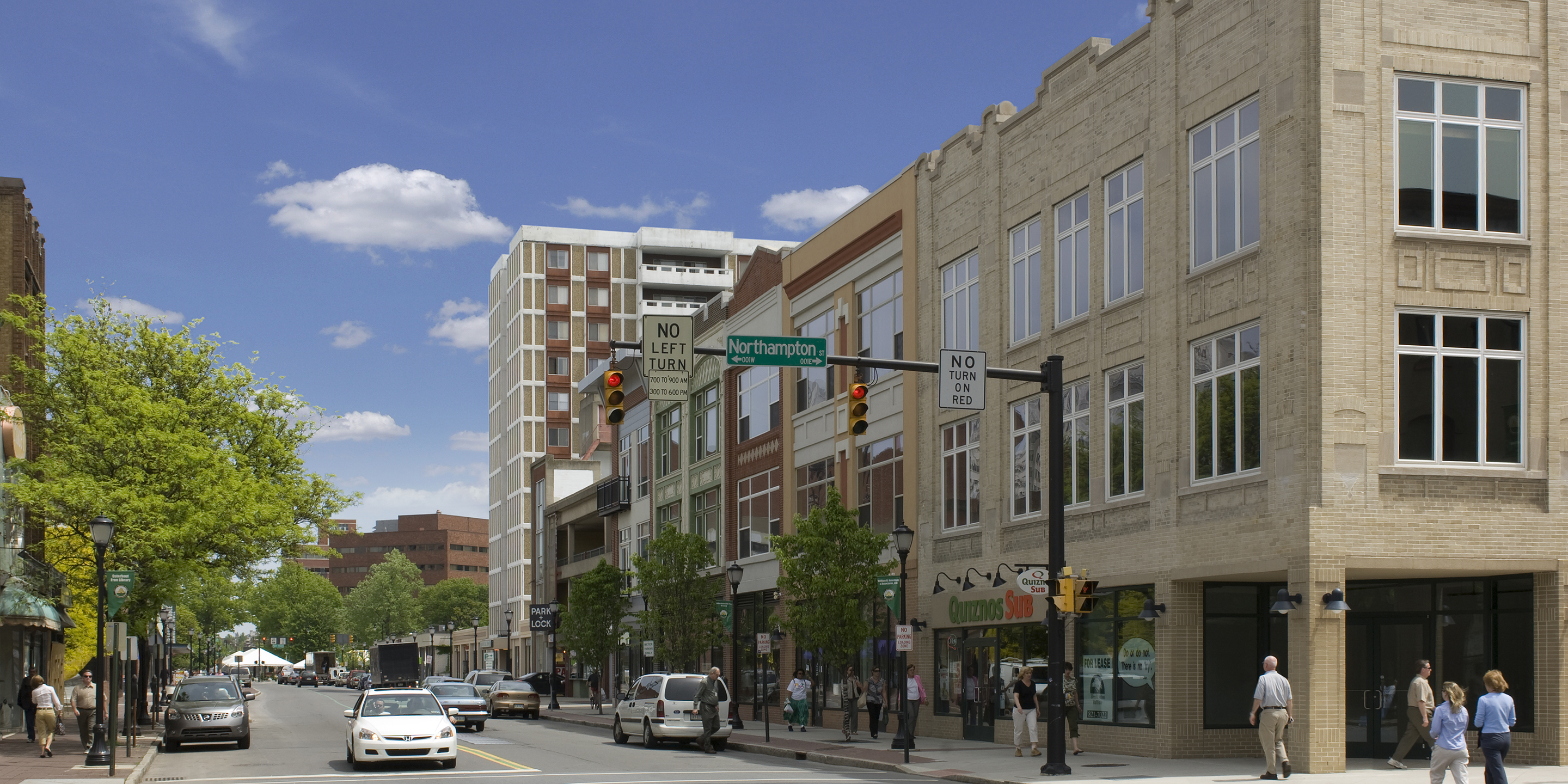 Cooper Carry developed an urban, mixed-use design for a site at the intersection of South Main Street and East Northampton Street in Wilkes-Barre, Pennsylvania. Wilkes-Barre is home to two colleges: Kings College and Wilkes University. The project incorporates the cinema Wilkes-Barre Movies 14 with a ground-floor entrance. Ultimately, Cooper Carry developed concept design plan schemes through construction documentation and construction administration for the site. The project includes a new theater shell, an underground parking garage, residential units on the upper floor of the existing masonry buildings, and new street-level commercial space. The design incorporates the development criteria provided by the client along with building size and location limitations as envisioned by the City of Wilkes-Barre.