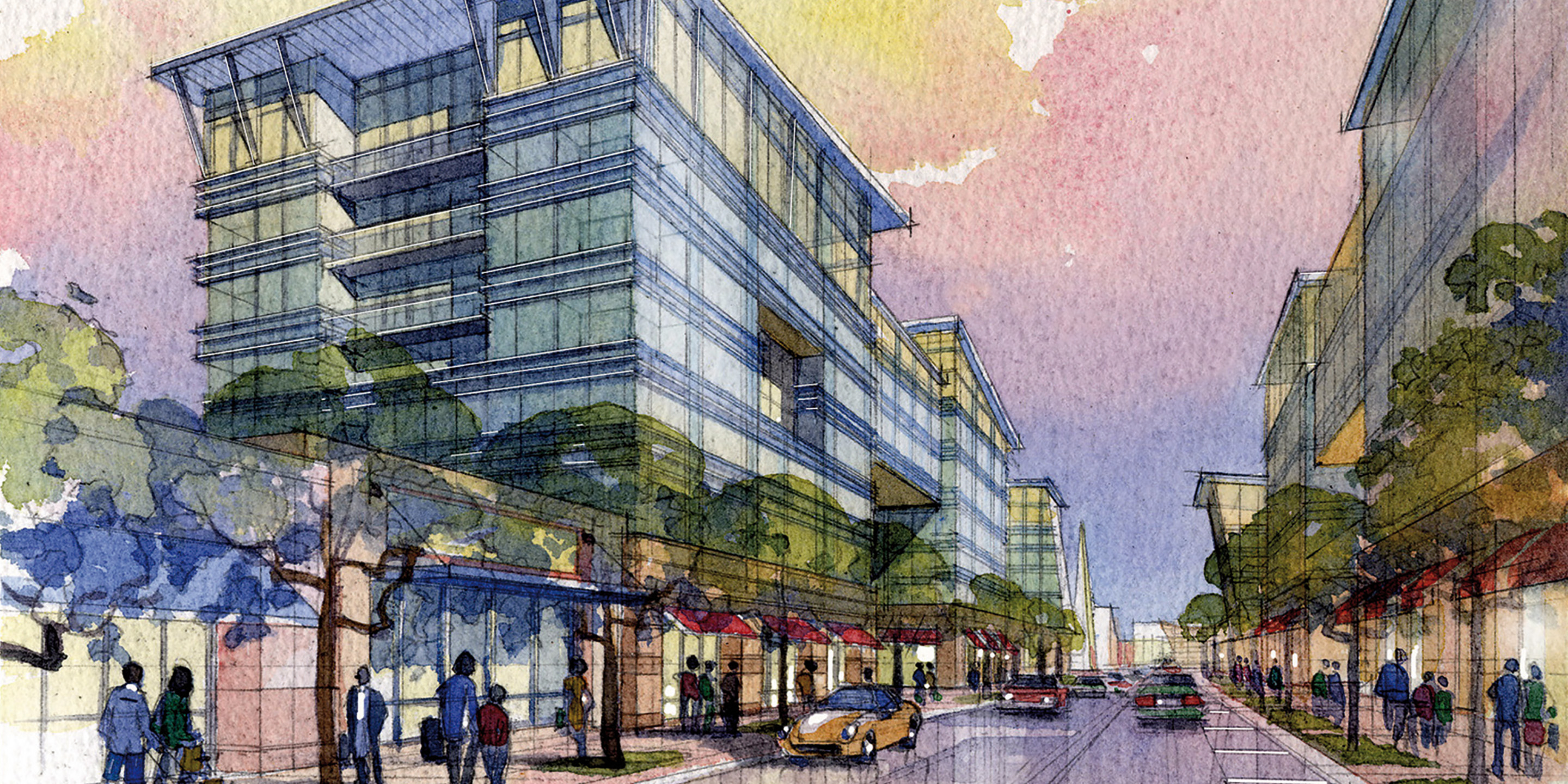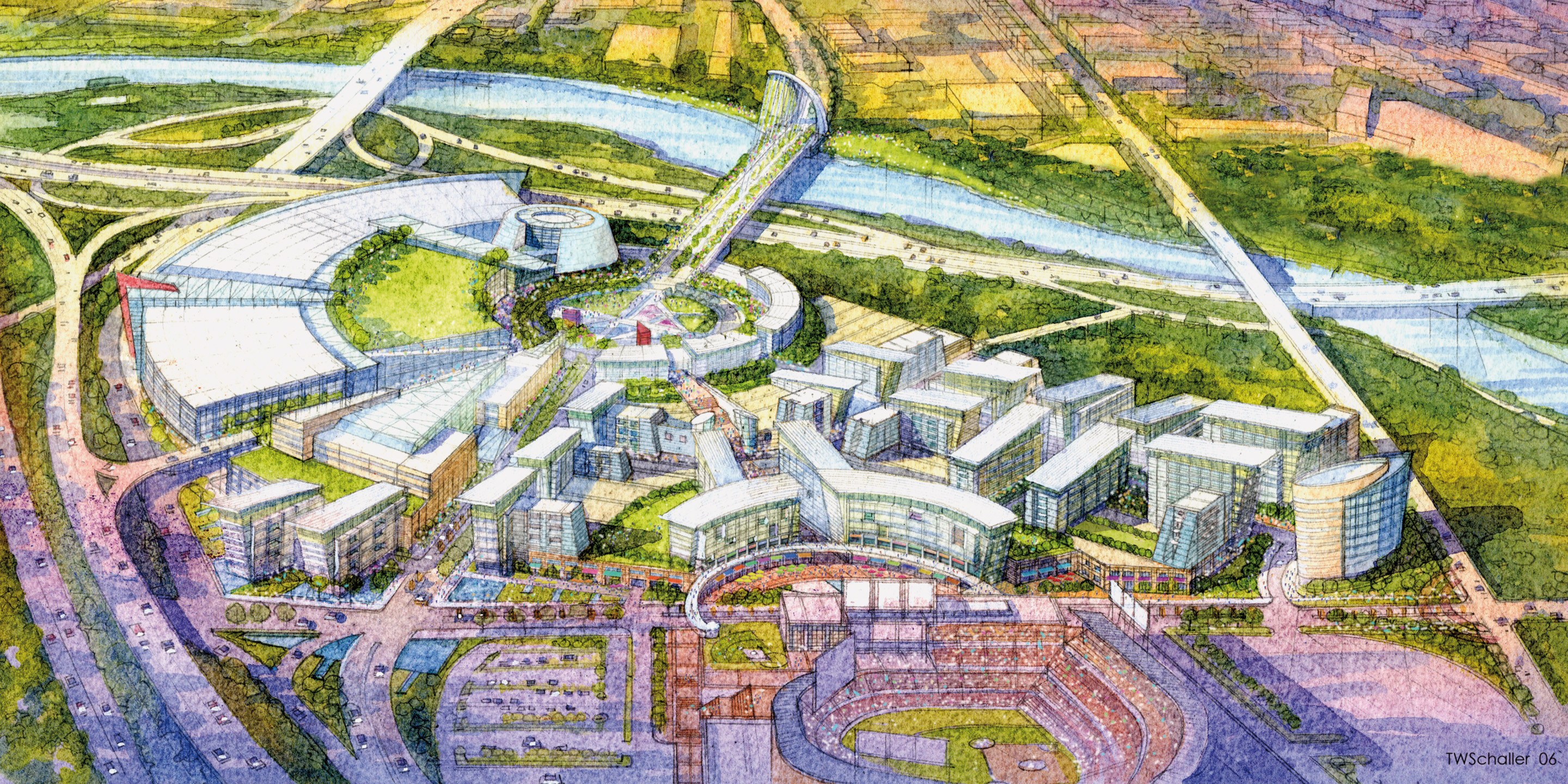 We have envisioned a mixed-use community comprised of apartments and condominiums, culture and the arts, retail and entertainment, office and hotel. These uses will be layered upon a network of pedestrian-friendly streets and parkland that weaves throughout the development offering the resident and the visitor a delightful place to live, work, play, shop, and learn.